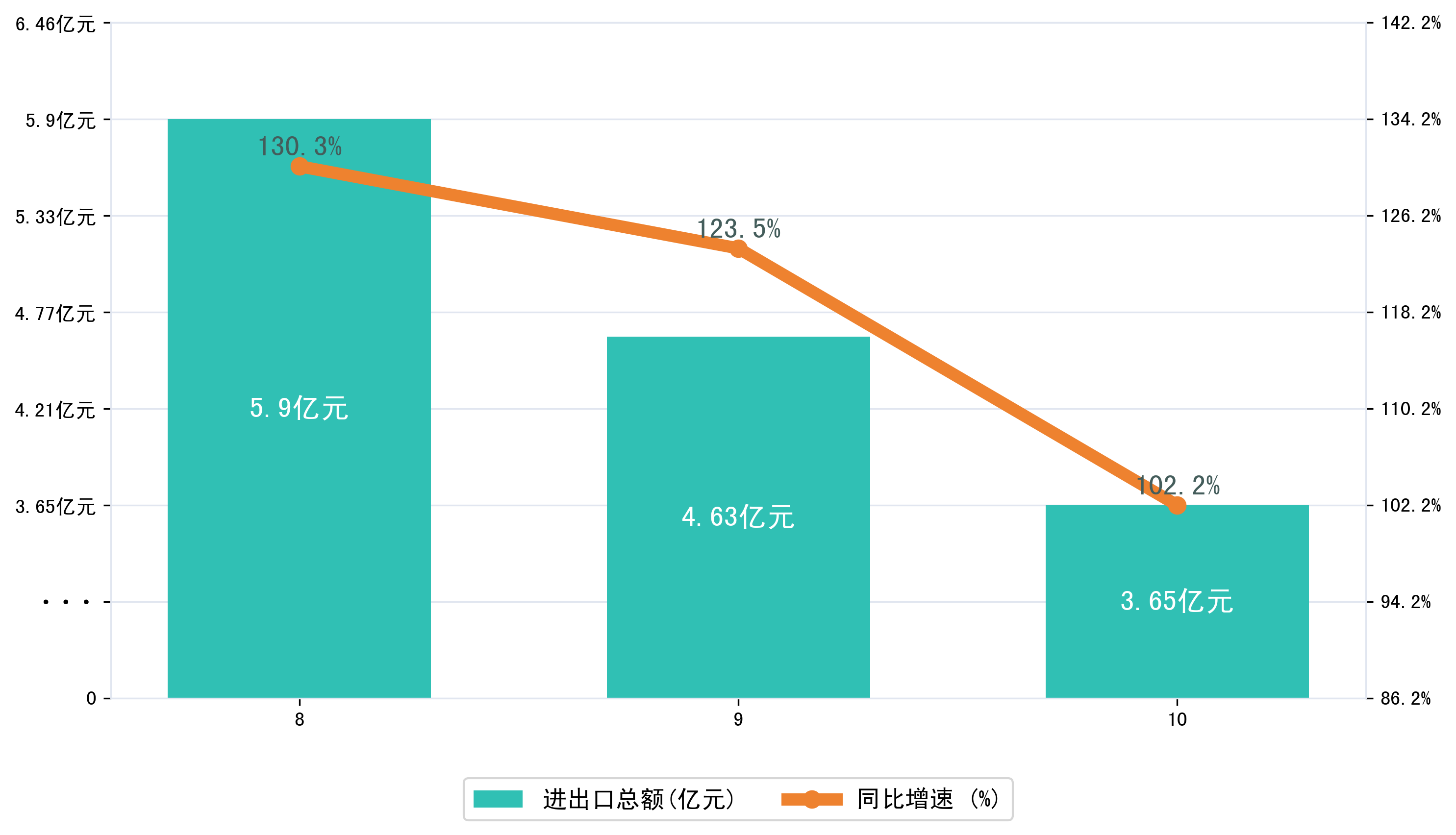 (图一:2025年8-10月石河子市进出口总额)
