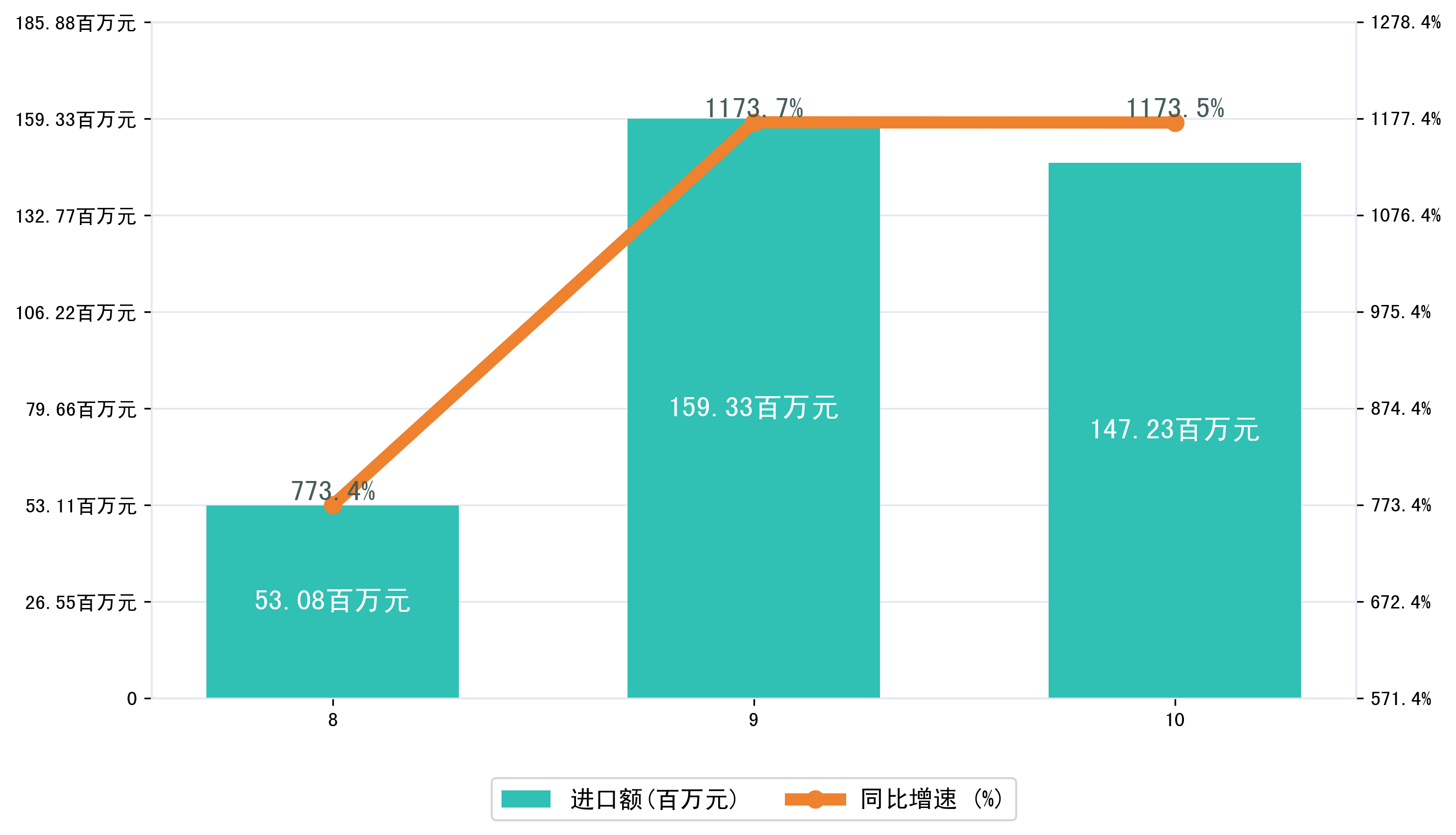 (图三:2025年8-10月石河子市进口额)