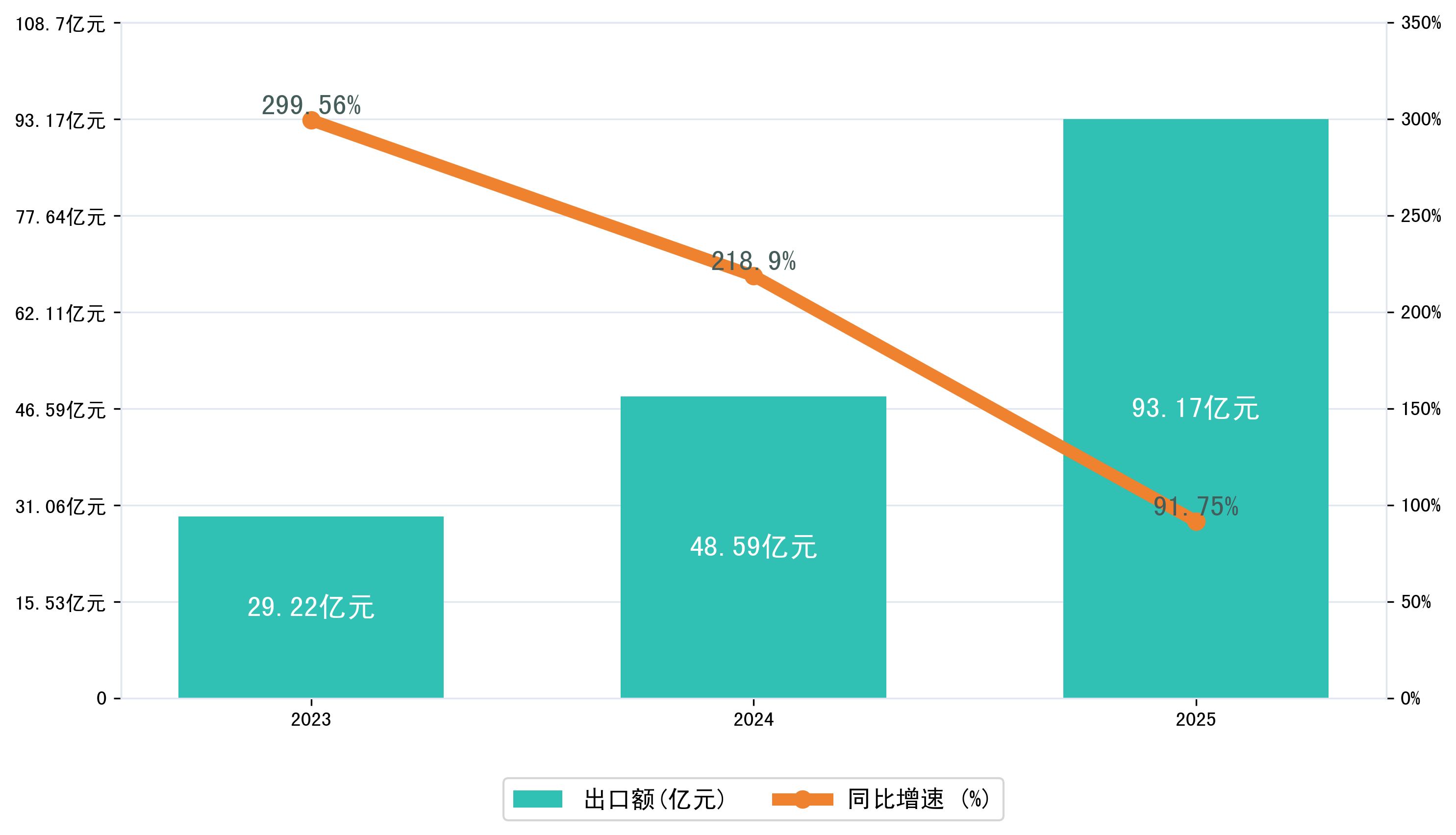 以美元计,2025年1-10月石河子市出口额为12,9679.7545万美元,相比上年同期增加了6,1293.5397万美元,同比增加89.60%。