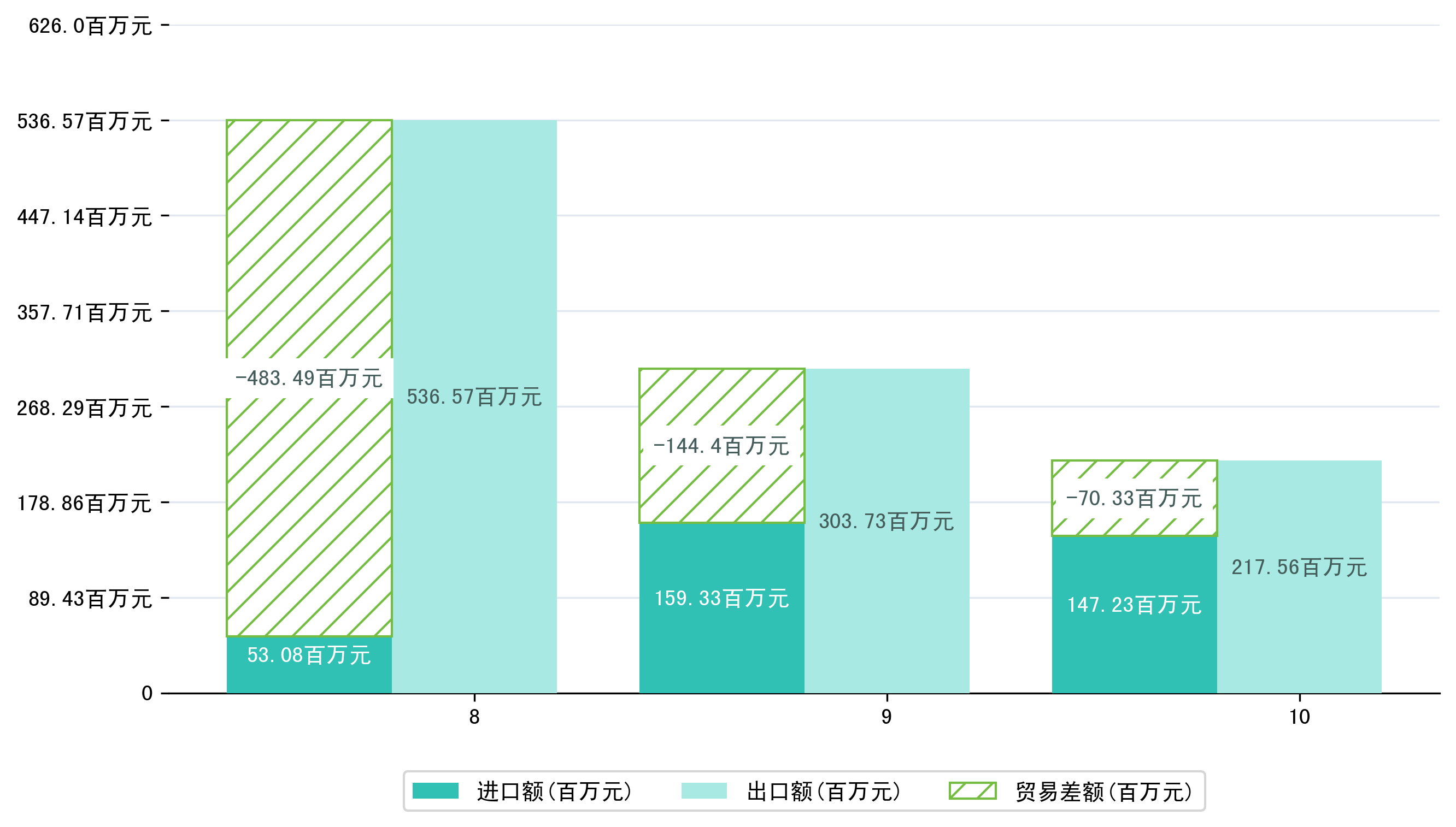 (图四:2025年8-10月石河子市贸易差额)