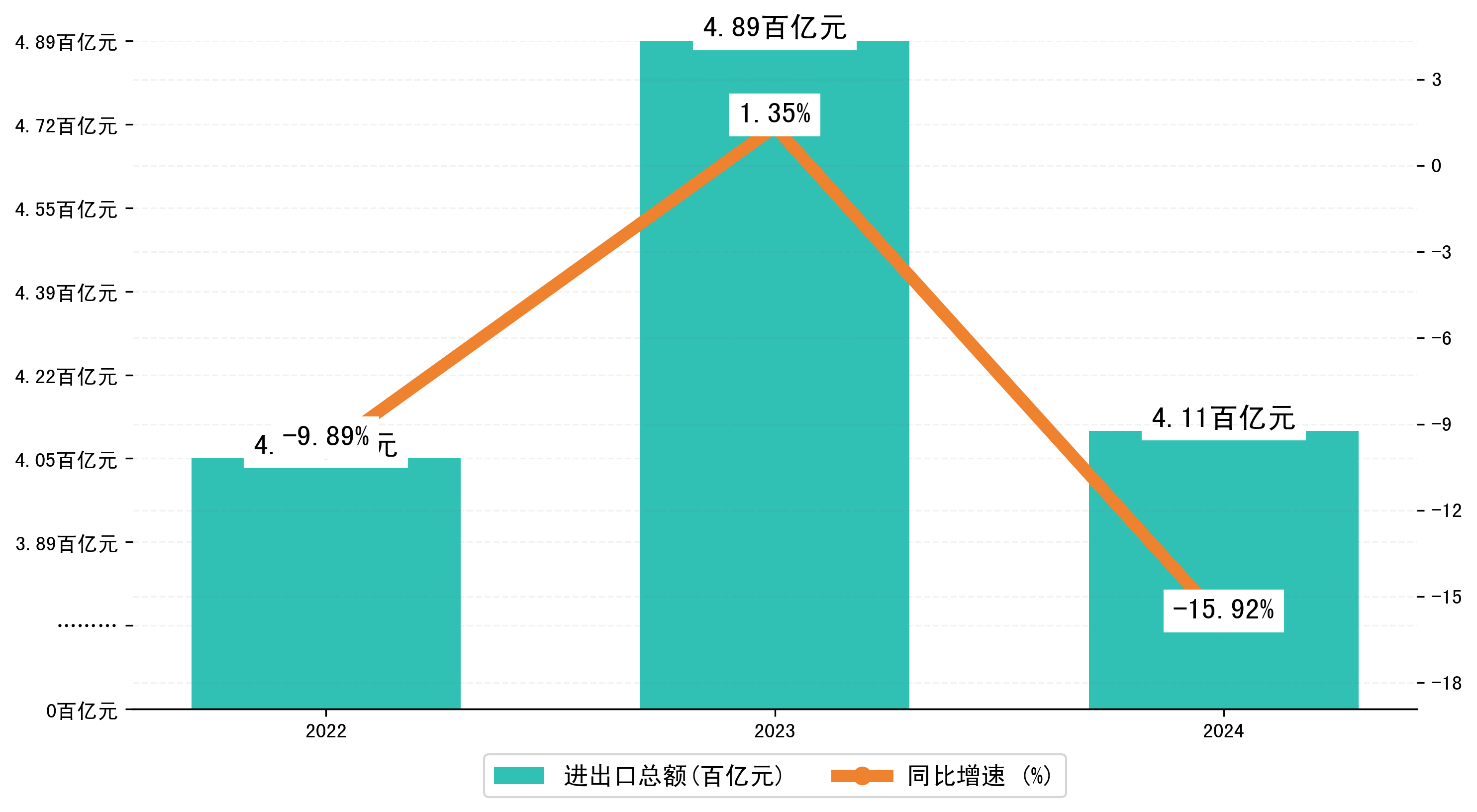 以人民币计,2024年1-4月石家庄市进出口总额为410,7668.4036万元,相比上年同期减少了77,7487.8135万元,同比增加了6.10%。