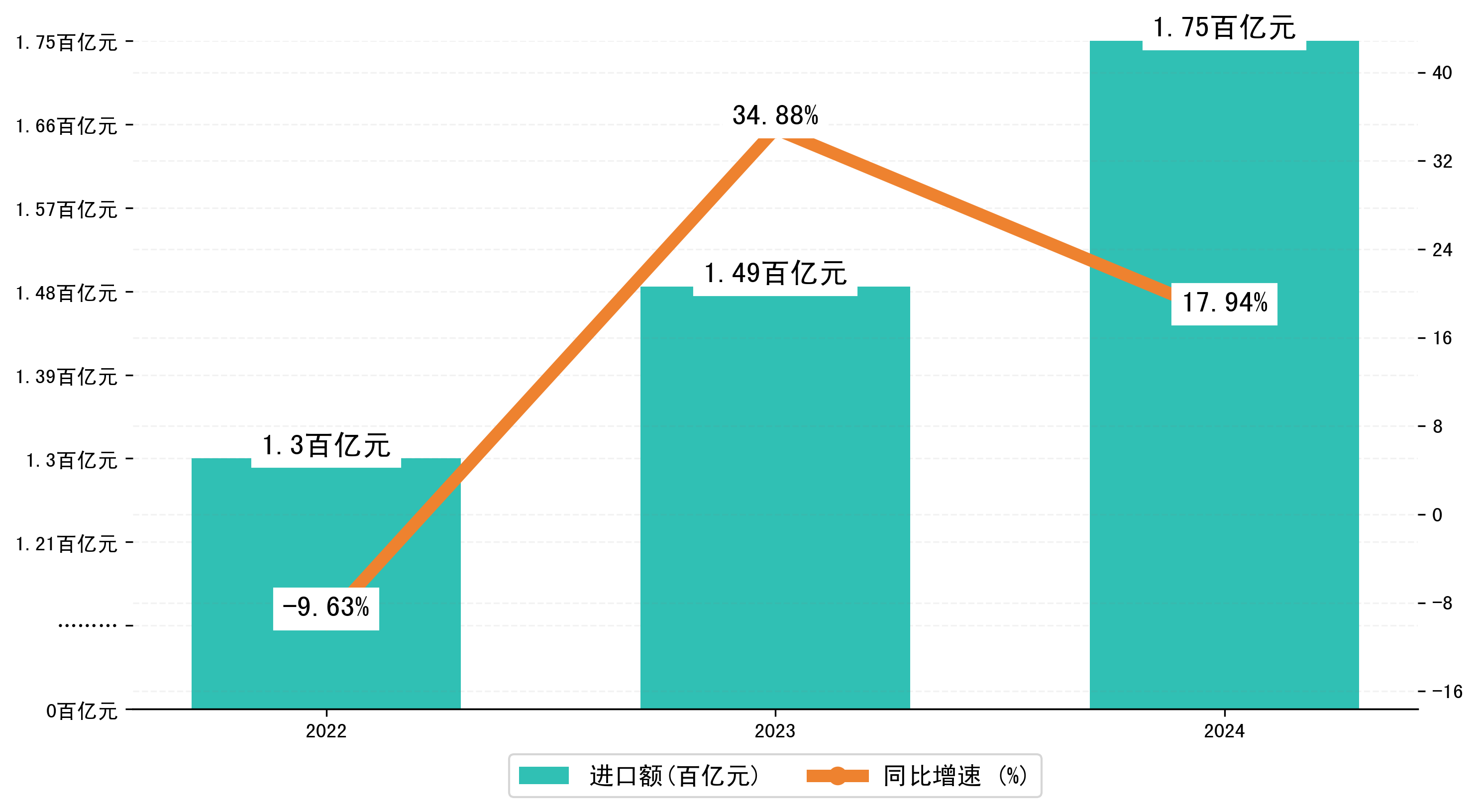 以人民币计,2024年1-4月石家庄市进口额为175,3813.936万元,相比上年同期增加了26,6808.8567万元,同比增加了16.00%。
