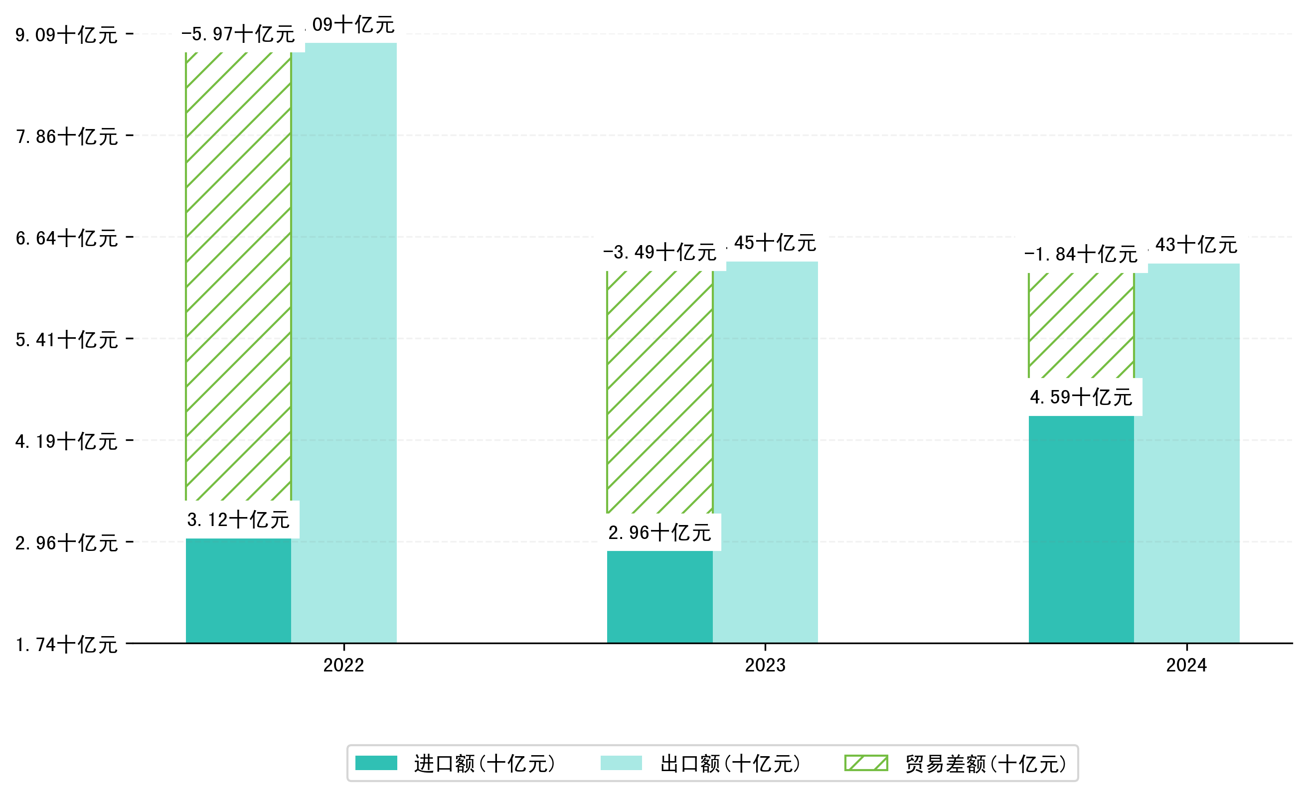 以美元计,2024年1月石家庄市贸易差额为2,5846,4866万美元(贸易顺差),相比上月减少了5,6895,7736万美元;相比上年同期减少了2,4105,5296万美元,同比减少-48.26%。