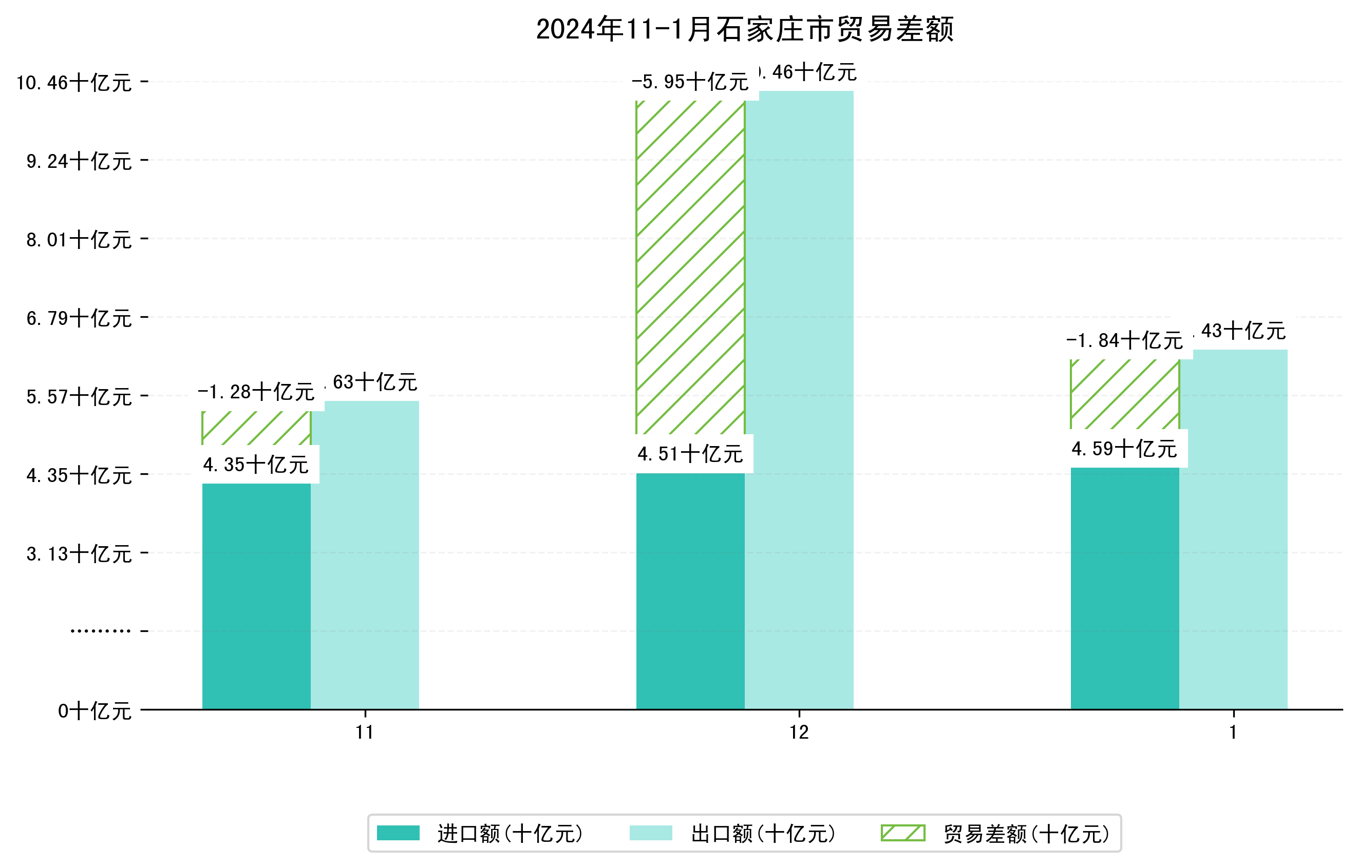 2024年1月石家庄市进出口总额及进出口差额统计分析