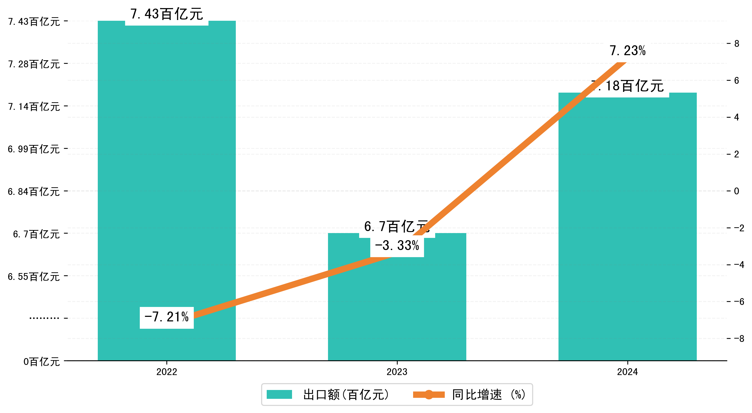以人民币计,2024年1-11月石家庄市出口额为718,1736.6145万元,相比上年同期增加了48,4232.0832万元,同比增加了7.30%。