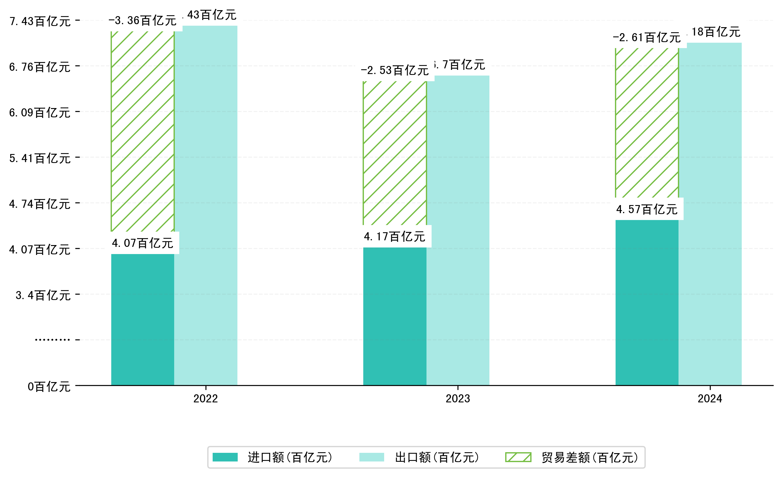 以人民币计,2024年1-11月石家庄市贸易差额为261,0881,0755万元(贸易顺差),相比上年同期增加了8,1474,4266万元,同比增加3.22%。