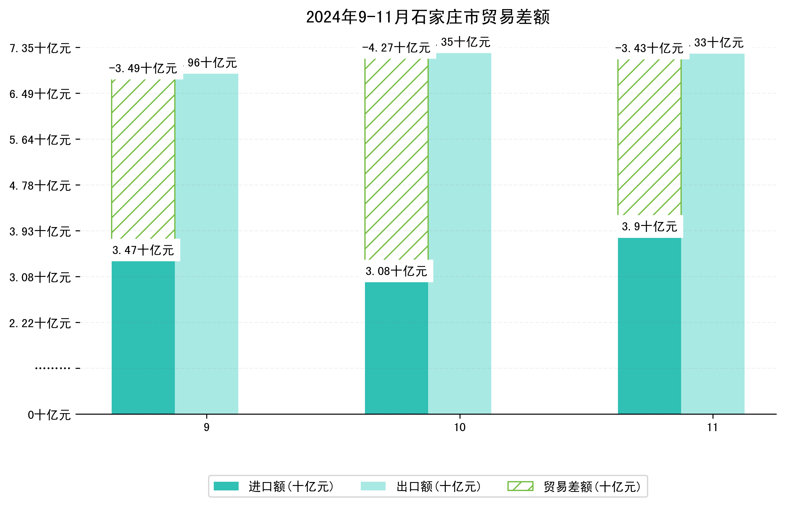 2024年11月石家庄市进出口总额及进出口差额统计分析