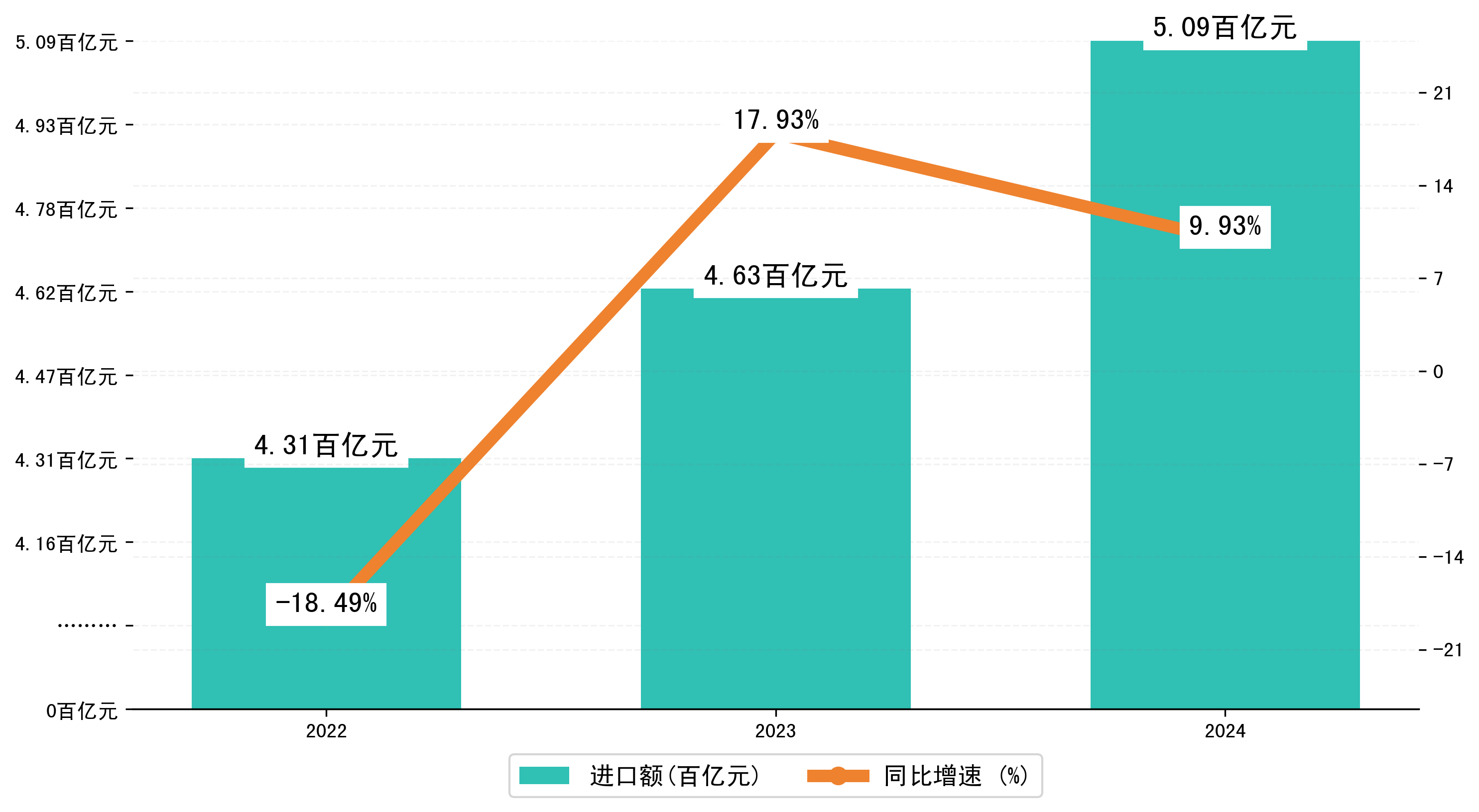 以人民币计,2024年1-12月石家庄市进口额为508,7154.4018万元,相比上年同期增加了45,9324.1344万元,同比增加了9.00%。