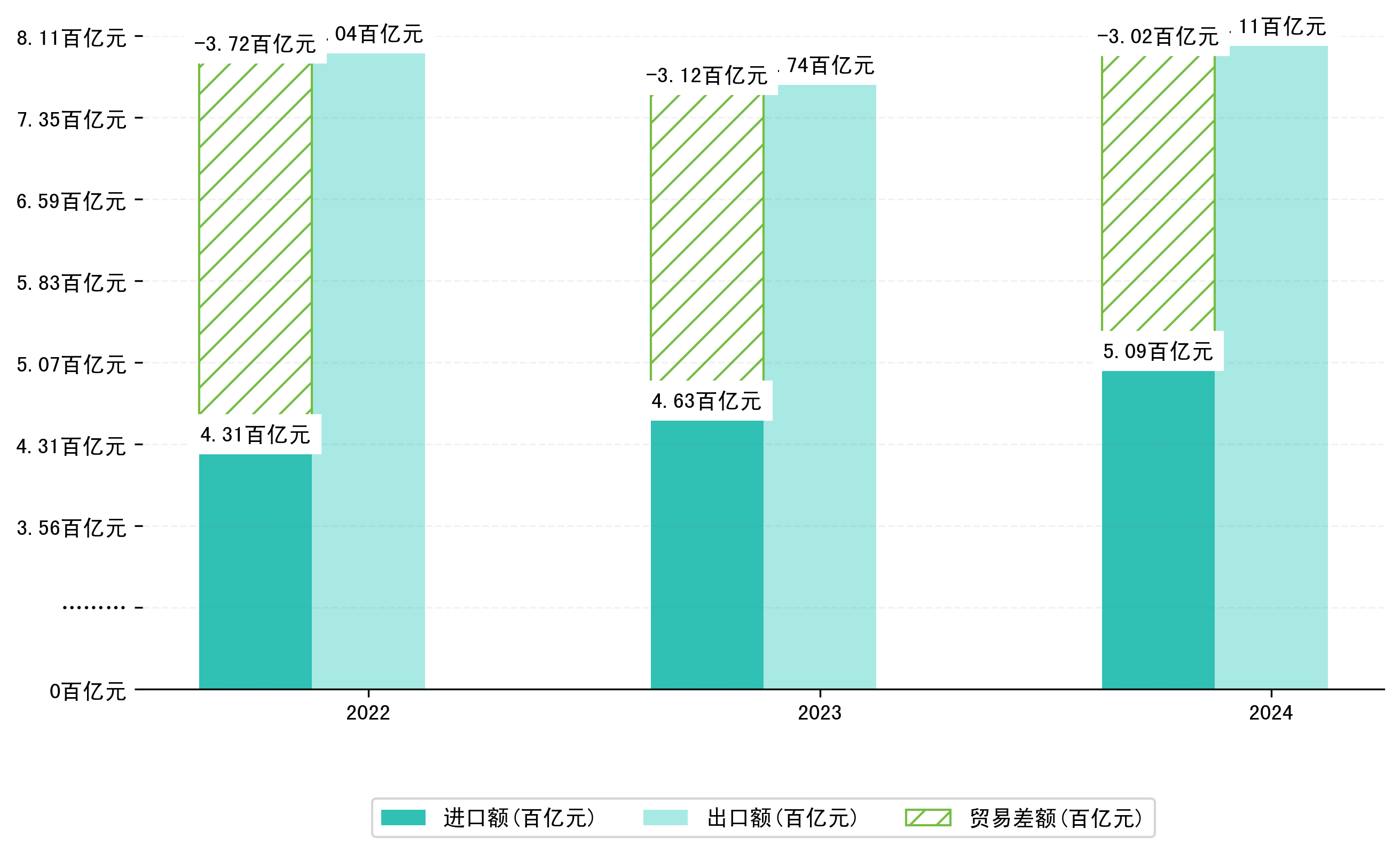 以人民币计,2024年1-12月石家庄市贸易差额为301,8166,2659万元(贸易顺差),相比上年同期减少了9,7446,8803万元,同比减少-3.13%。