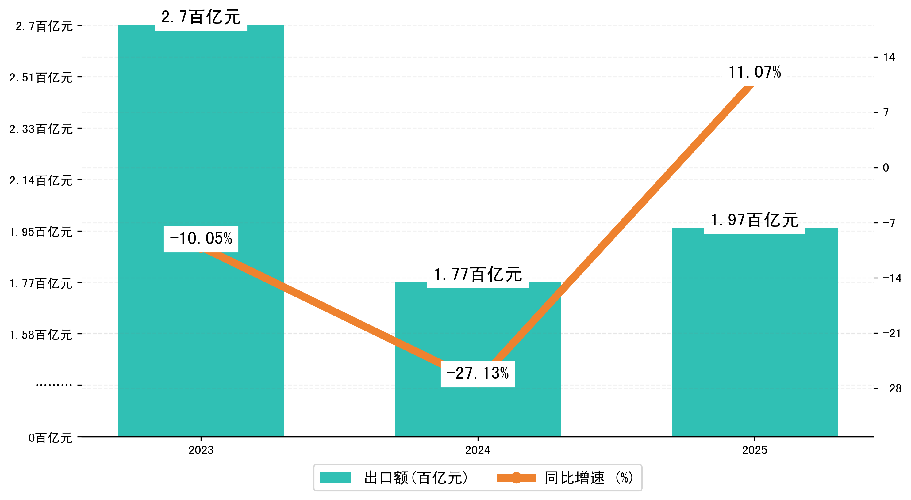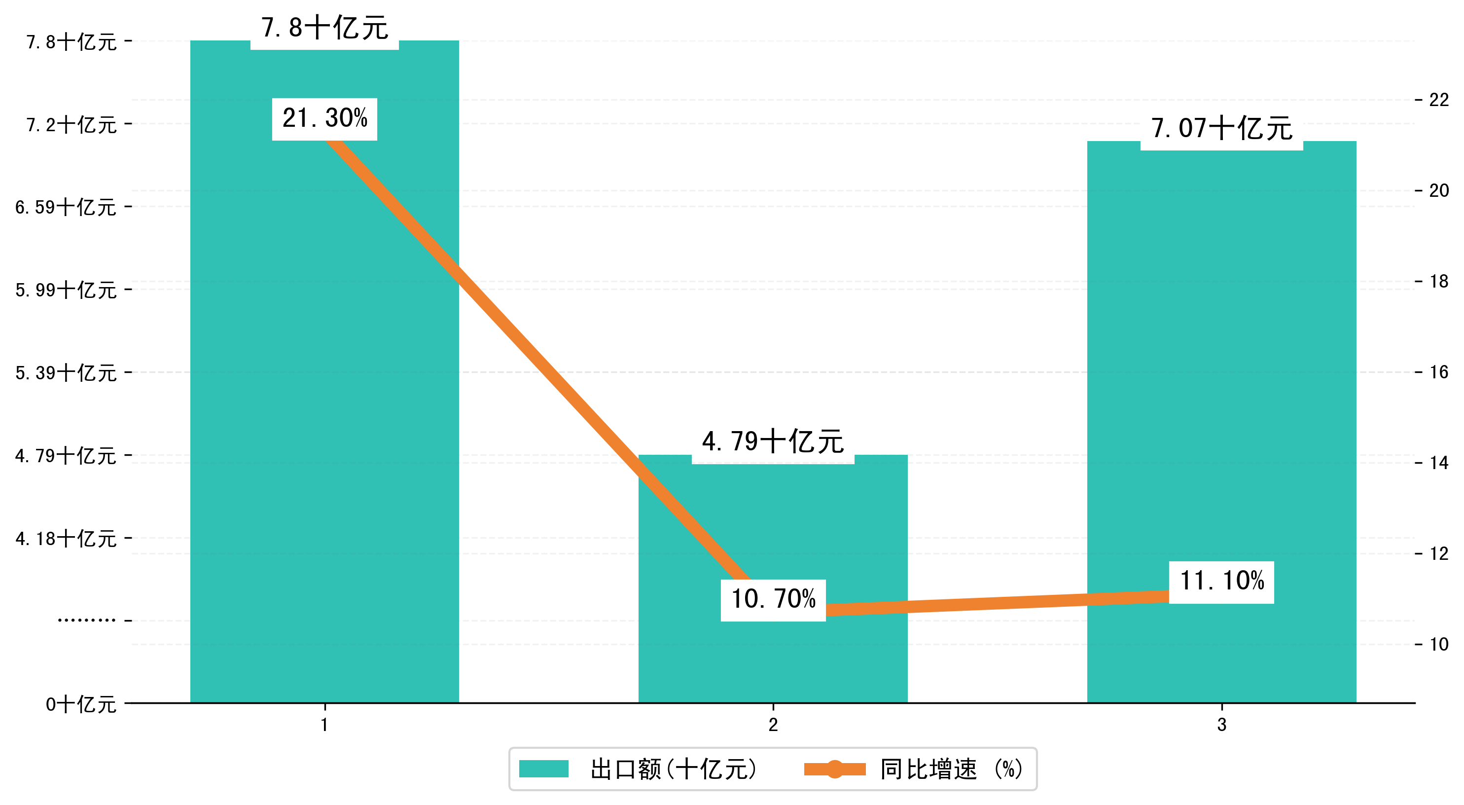 以美元计,2025年1-3月石家庄市出口额为27,3595.095万美元,相比上年同期增加了2,4584.3425万美元,同比增加9.90%。