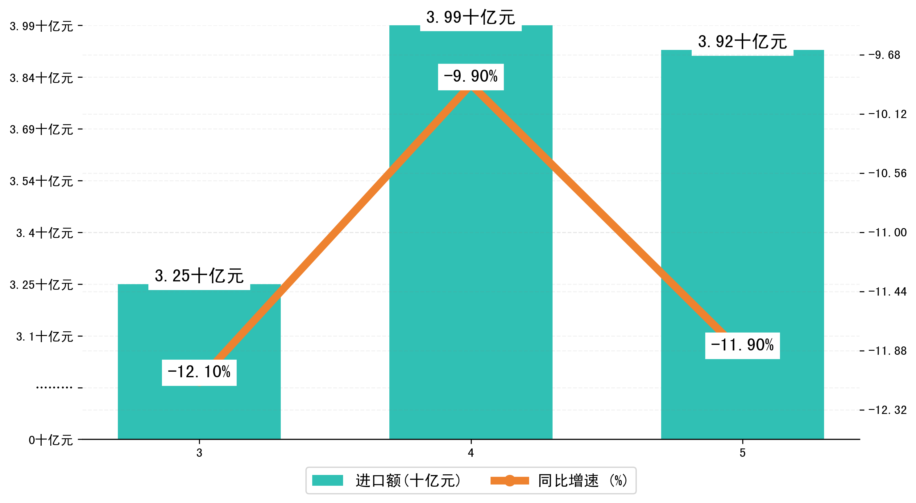 以人民币计,2025年5月石家庄市进口额为39,1758.6065万元,相比上月减少了7031.7846万元;相比上年同期减少了8,1062.615万元,同比减少了-11.90%。