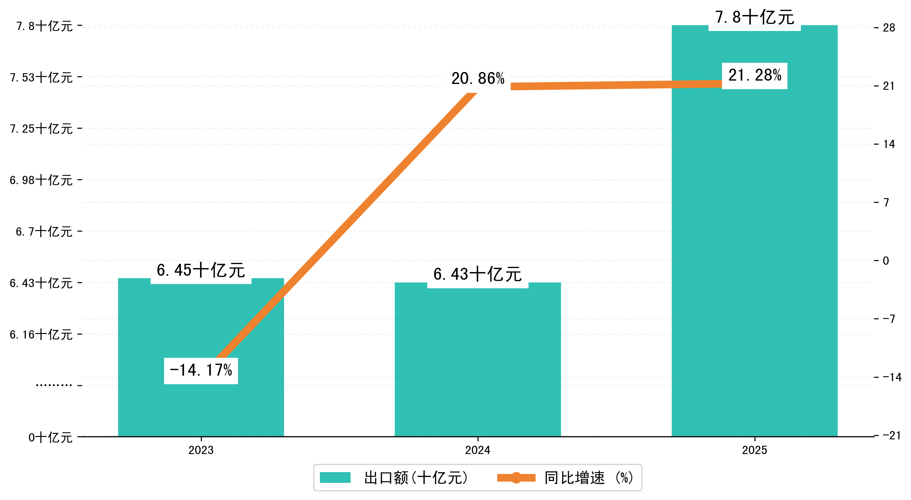 以人民币计,2025年1月石家庄市出口额为78,0003.6388万元,相比上月减少了14,3790.2388万元;相比上年同期增加了13,6883.7099万元,同比增加了21.30%。