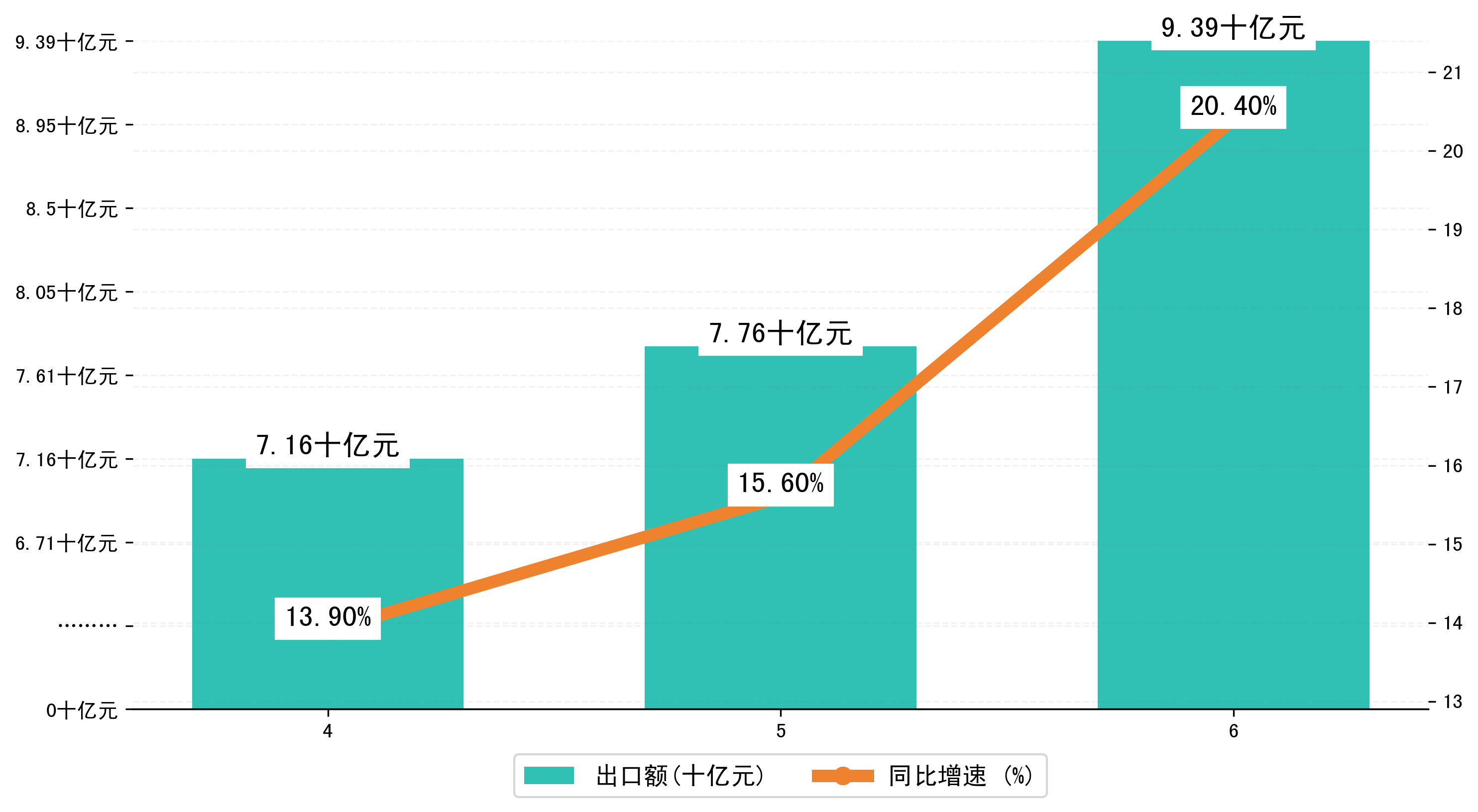 一、2025年6月石家庄市单月出口总额及进出口差额统计分析