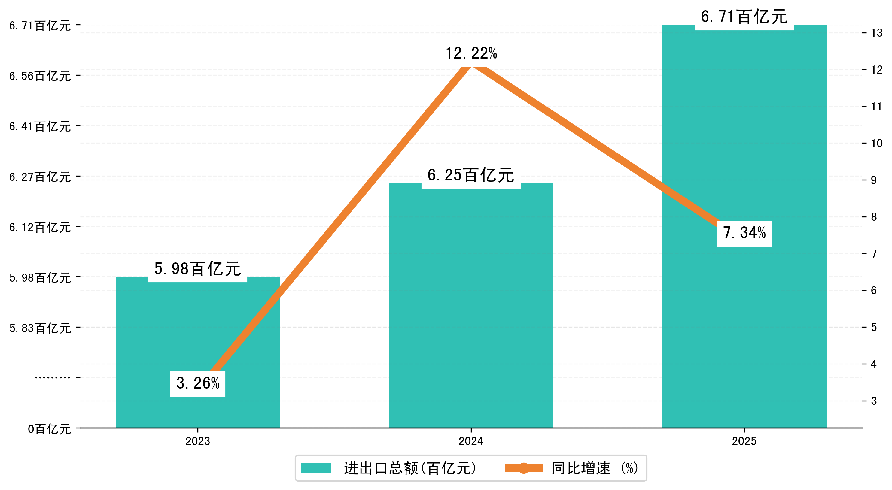 以人民币计,2025年1-6月石家庄市进出口总额为670,6324.5349万元,相比上年同期增加了45,8423.5956万元,同比增加了8.10%。