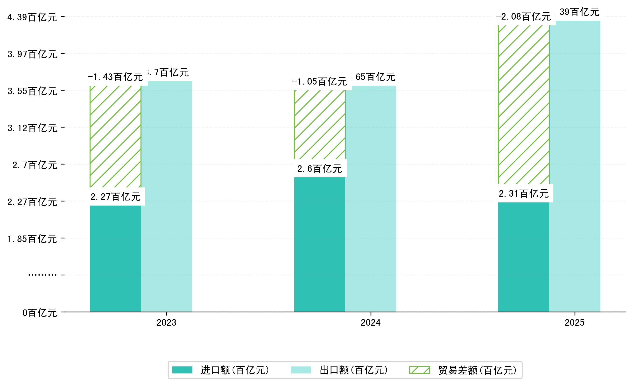 以美元计,2025年1-6月石家庄市贸易差额为28,9693,9438万美元(贸易顺差),相比上年同期增加了14,1535,6405万美元,同比增加95.53%。