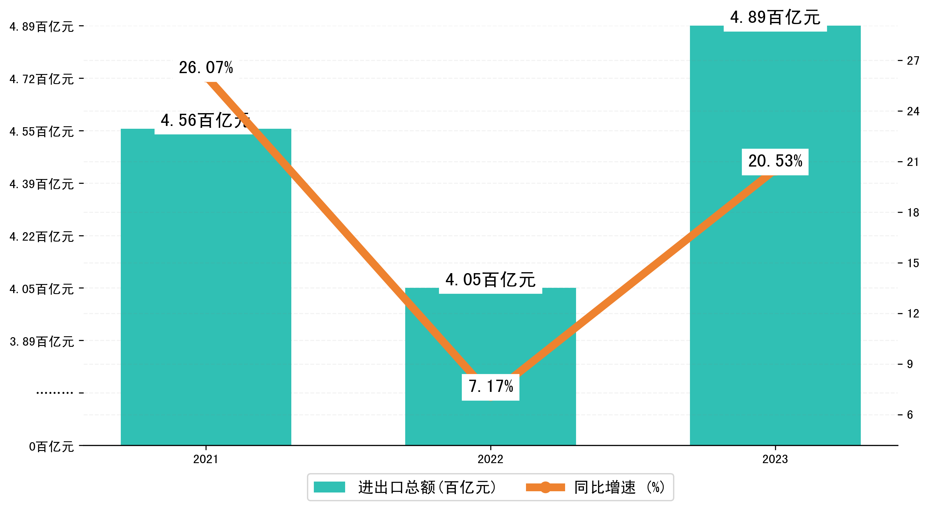 以美元计,2023年1-4月石家庄市进出口总额为71,3130.2735万美元,相比上年同期增加了7,6491.7245万美元,同比增加9.00%。