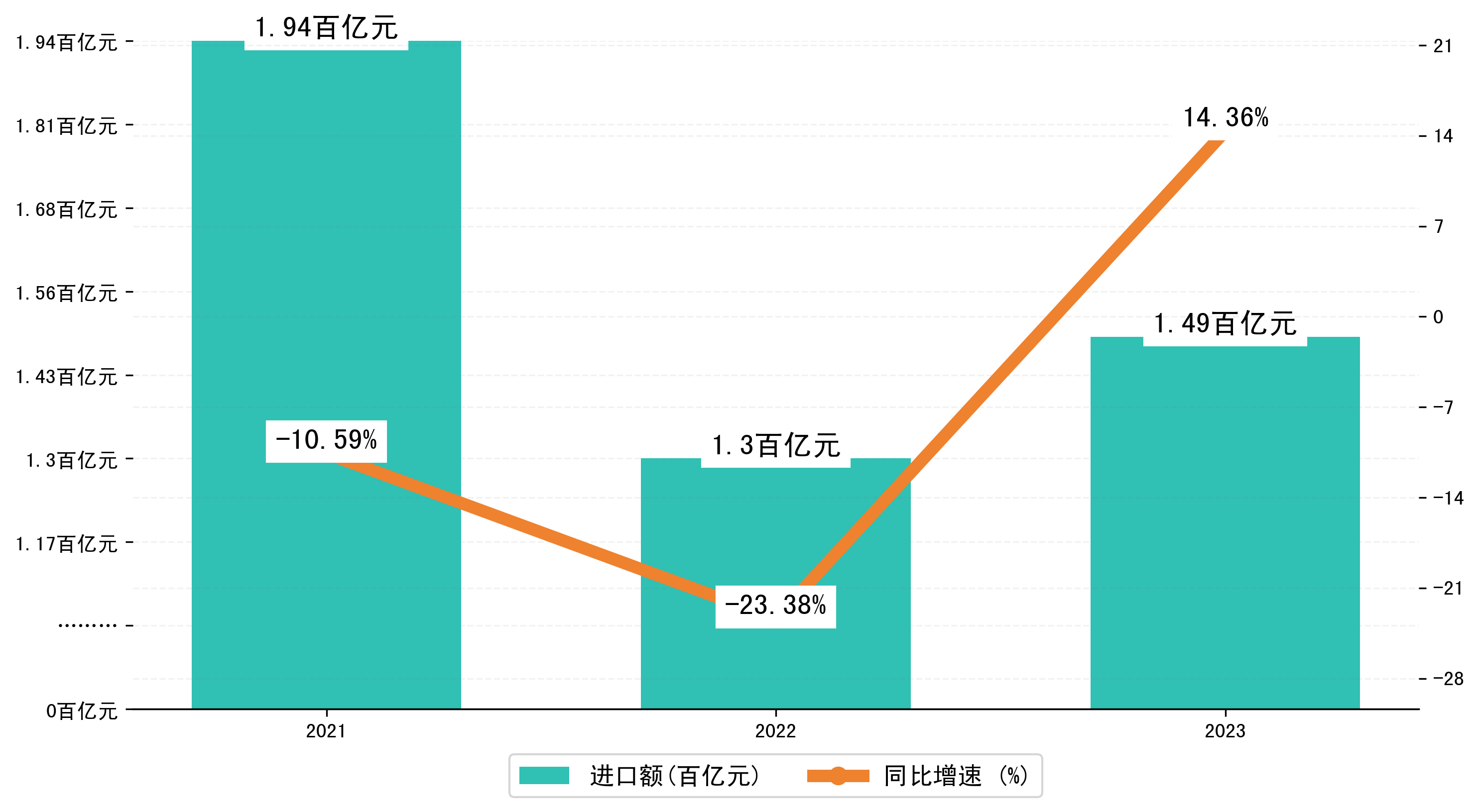 以美元计,2023年1-4月石家庄市进口额为21,6846.5358万美元,相比上年同期增加了1,2574.0582万美元,同比增加-2.30%。