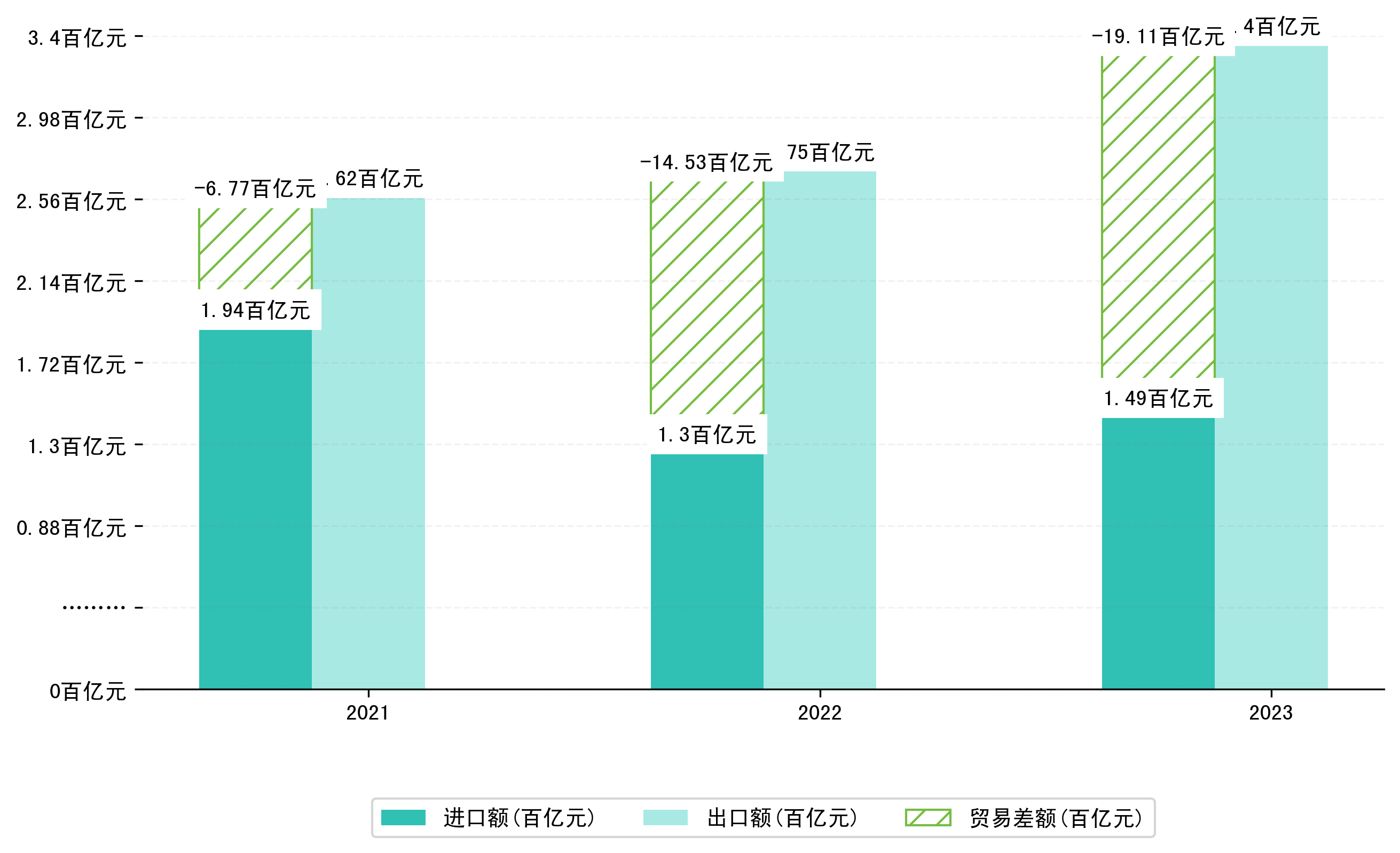 以美元计,2023年1-4月石家庄市贸易差额为27,9437,2019万美元(贸易顺差),相比上年同期增加了5,1343,6081万美元,同比增加22.51%。