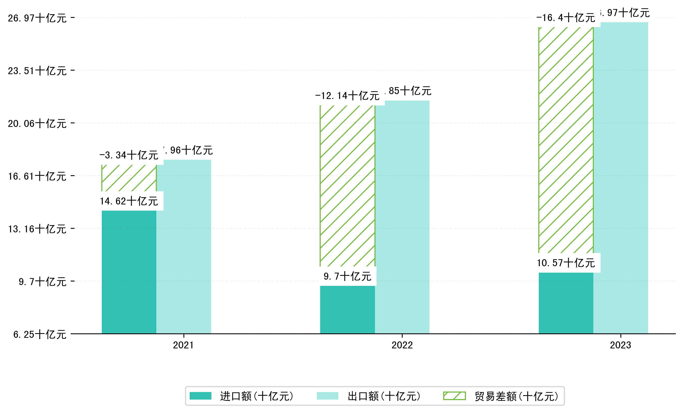 以美元计,2023年1-3月石家庄市贸易差额为23,9833,6725万美元(贸易顺差),相比上年同期增加了4,8940,3994万美元,同比增加25.64%。