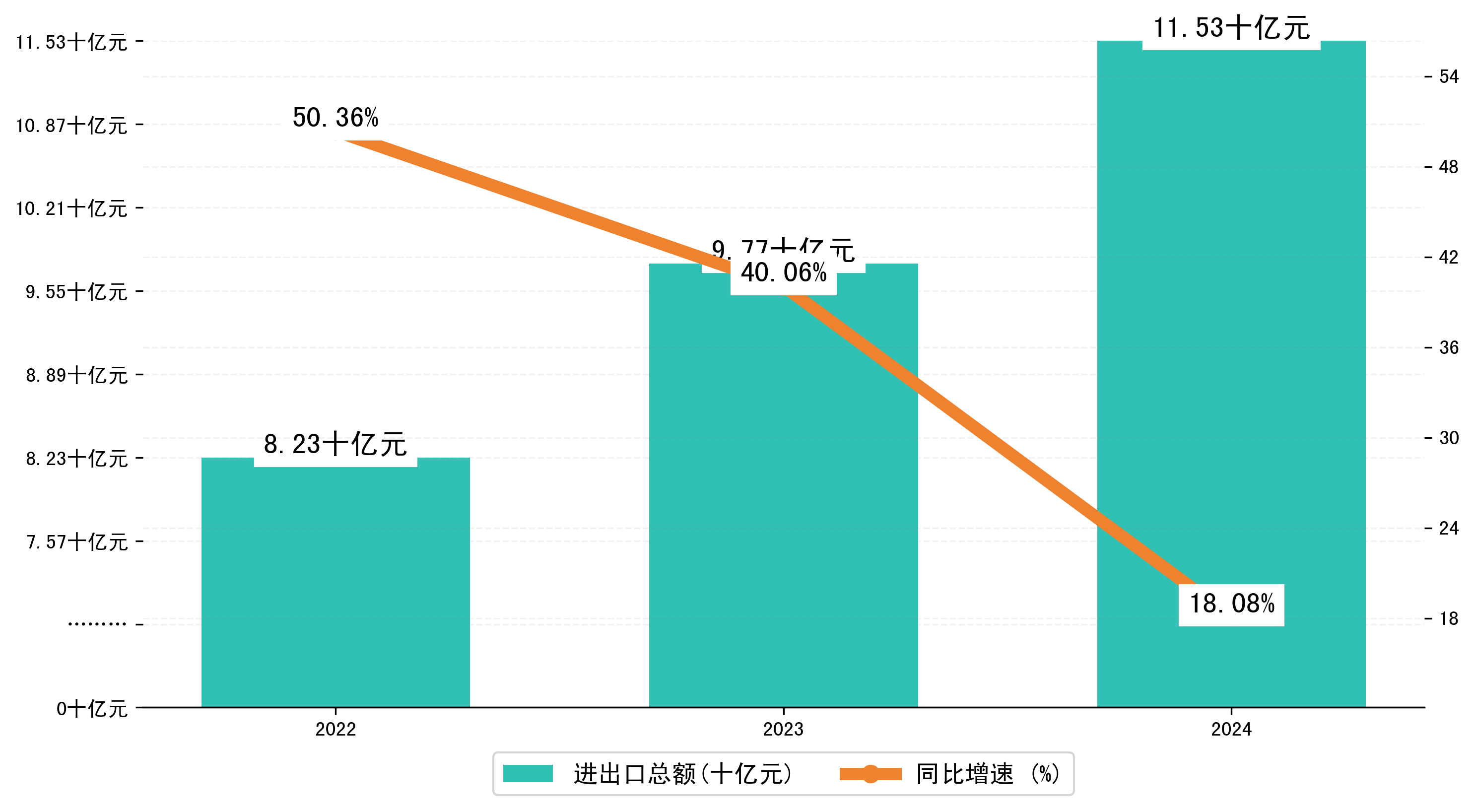 以人民币计,2024年1-6月绥芬河市进出口总额为115,3139.9666万元,相比上年同期增加了17,6539.1988万元,同比增加了18.00%。