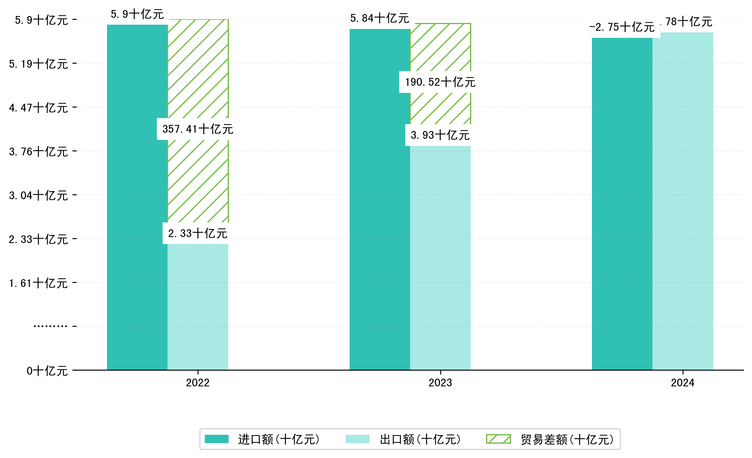 以人民币计,2024年1-6月绥芬河市贸易差额为2747,1216万元(贸易顺差),相比上年同期增加了19,3266,3160万元,同比增加-101.44%。