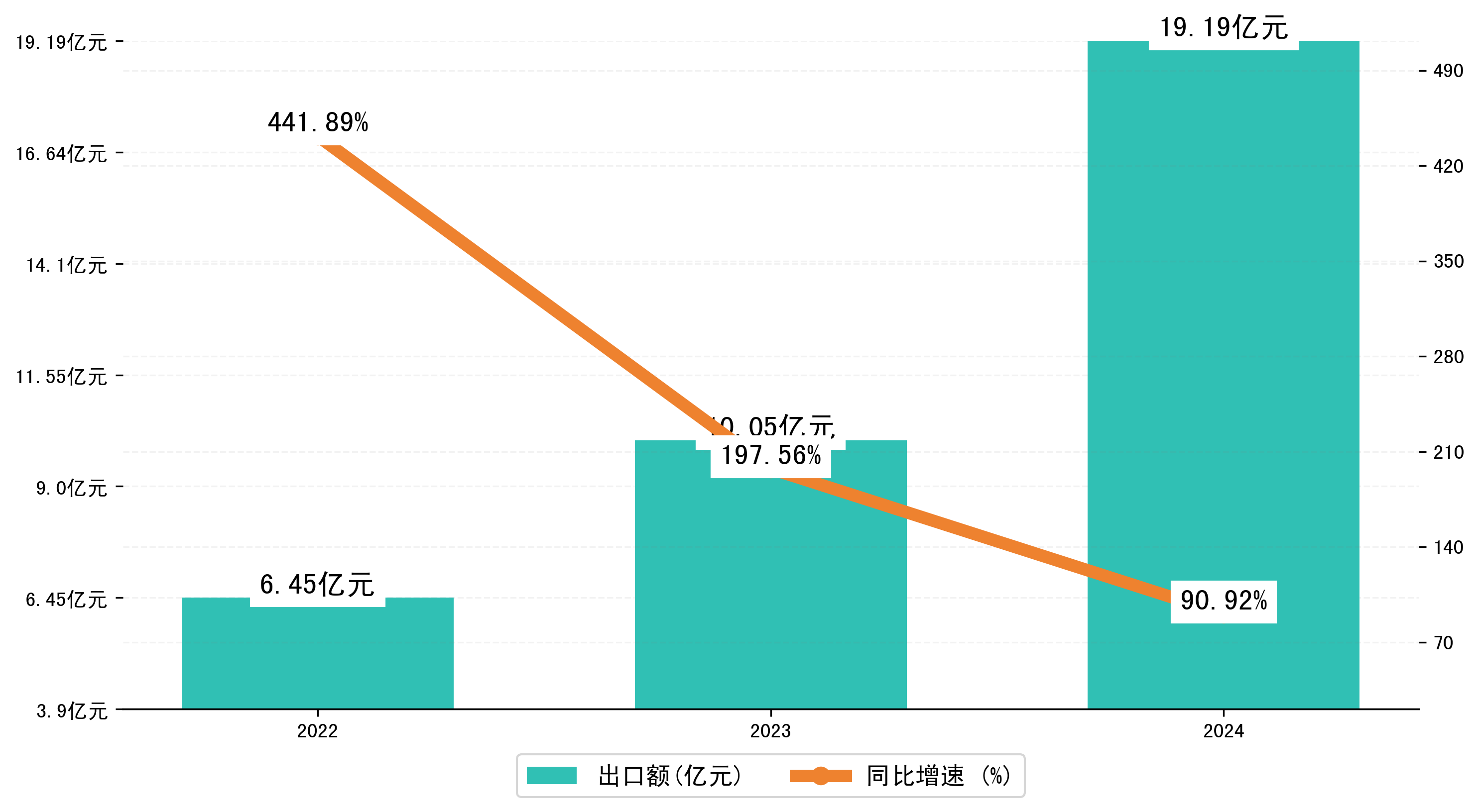 以人民币计,2024年1-2月绥芬河市出口额为19,1924.2671万元,相比上年同期增加了9,1396.3056万元,同比增加了91.00%。