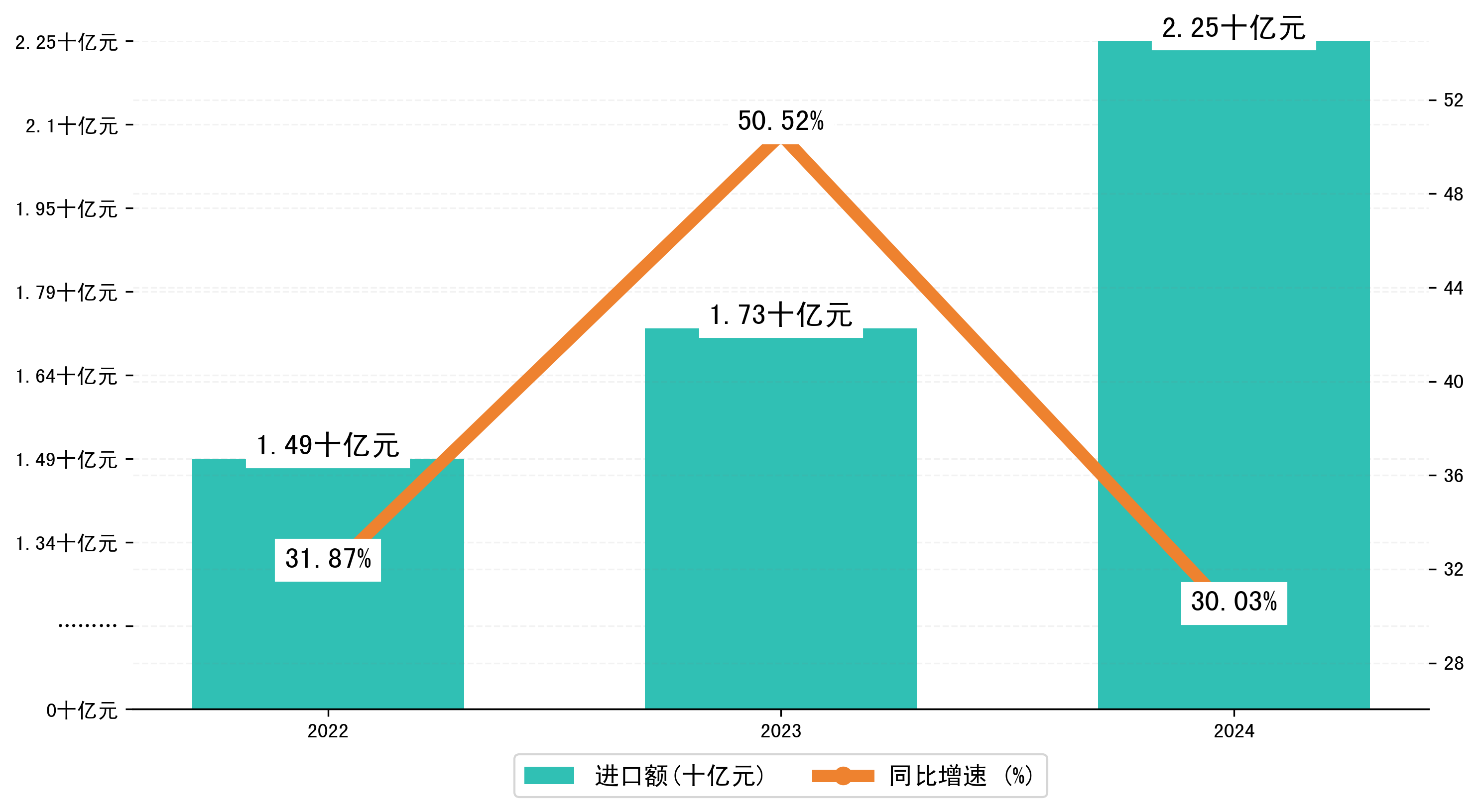 以人民币计,2024年1-2月绥芬河市进口额为22,4759.2183万元,相比上年同期增加了5,1901.6928万元,同比增加了29.10%。