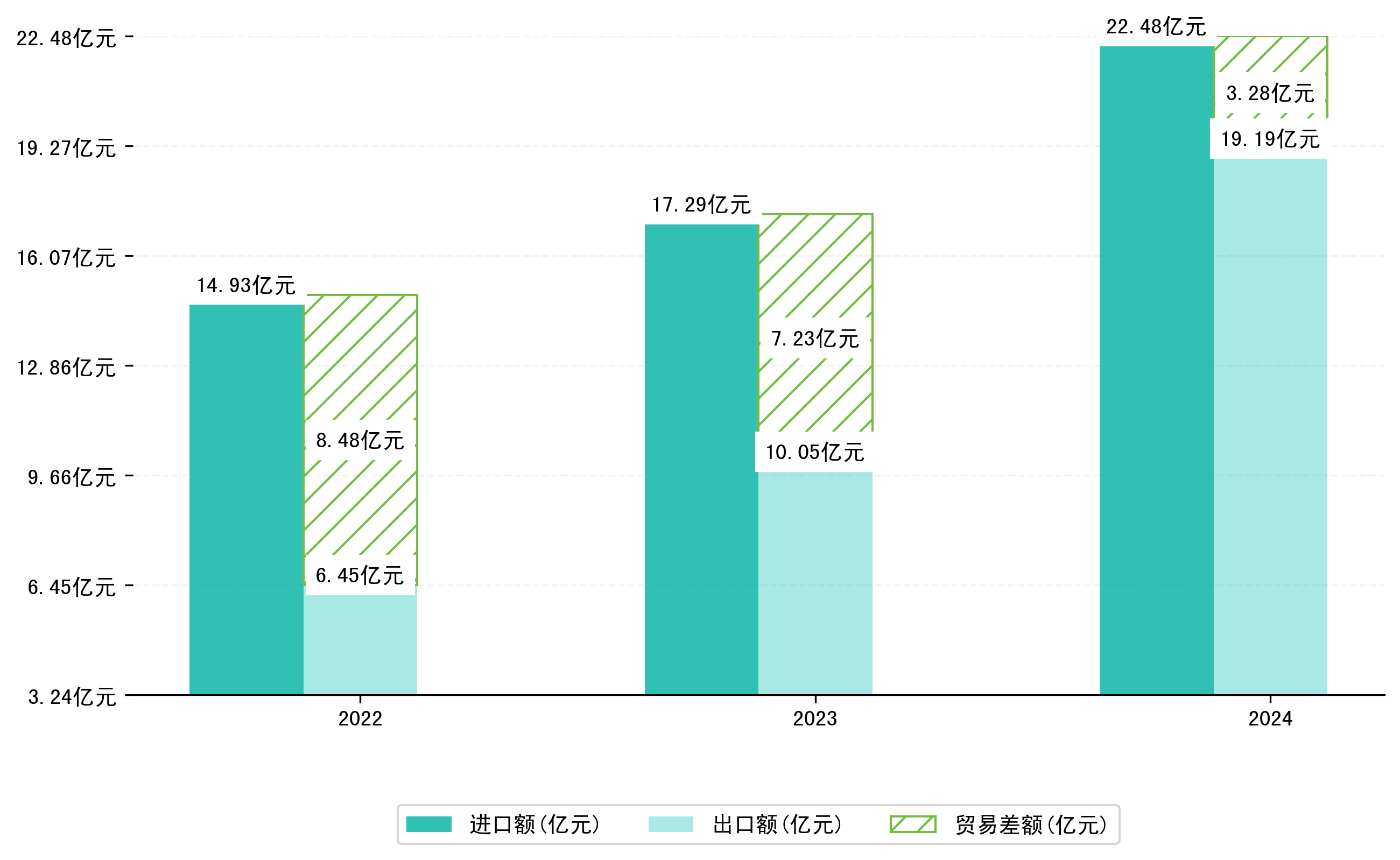 以人民币计,2024年2月绥芬河市贸易差额为2,6256,1212万元(贸易逆差),相比上月减少了1,9677,2912万元,即2732,4398万美元;相比上年同期增加了1,0274,7824万元,同比增加-28.13%。