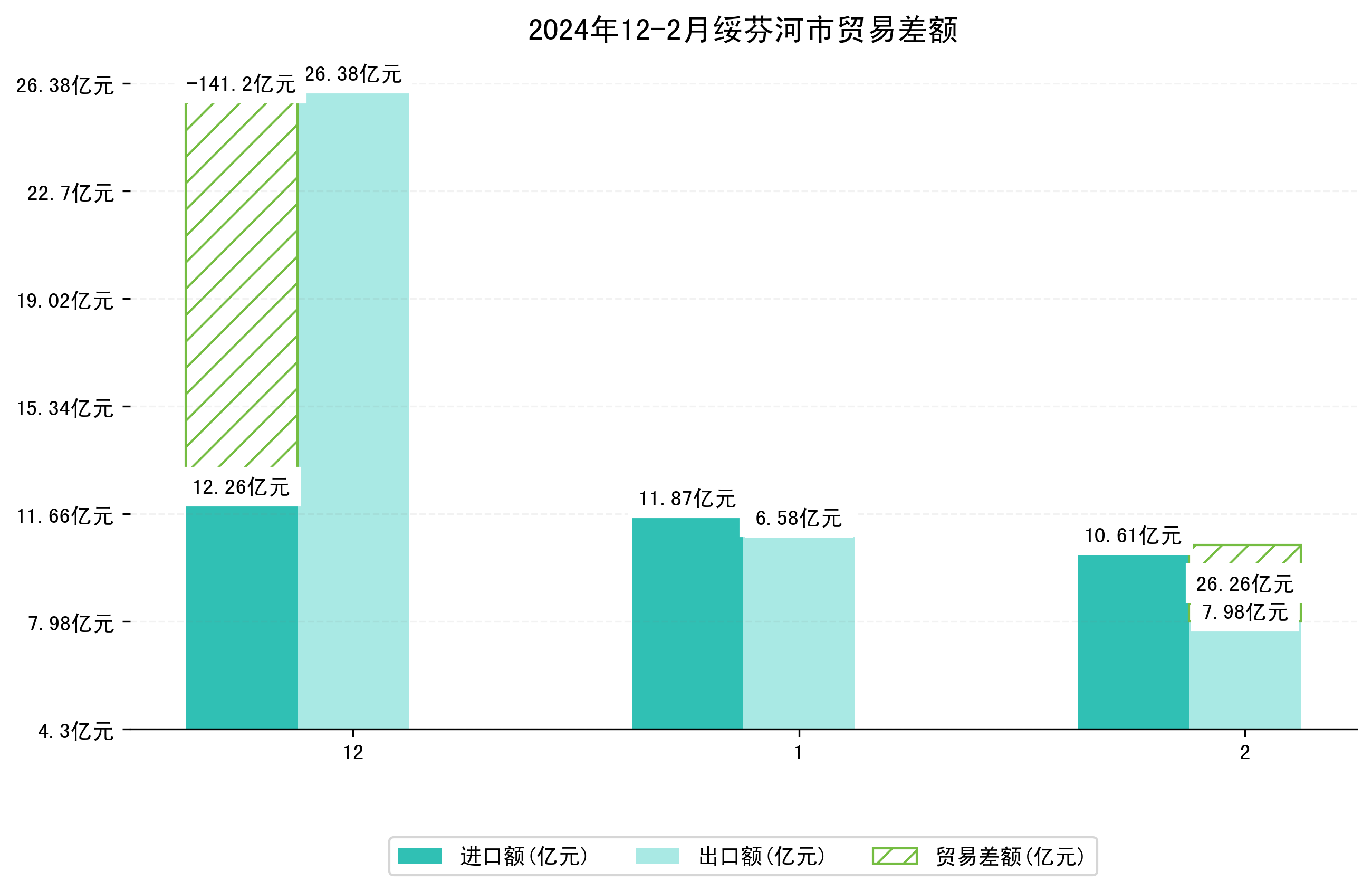 2024年2月绥芬河市进出口总额及进出口差额统计分析
