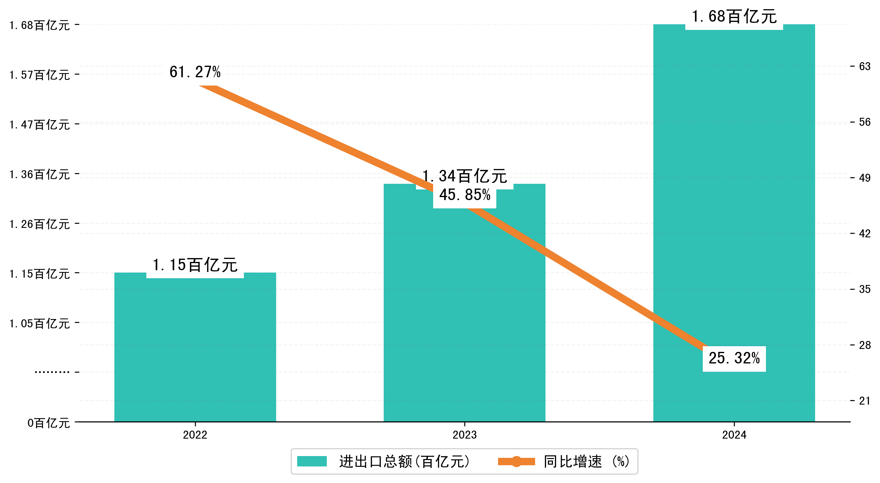 以人民币计,2024年1-8月绥芬河市进出口总额为167,8753.5207万元,相比上年同期增加了33,9165.1183万元,同比增加了25.00%。