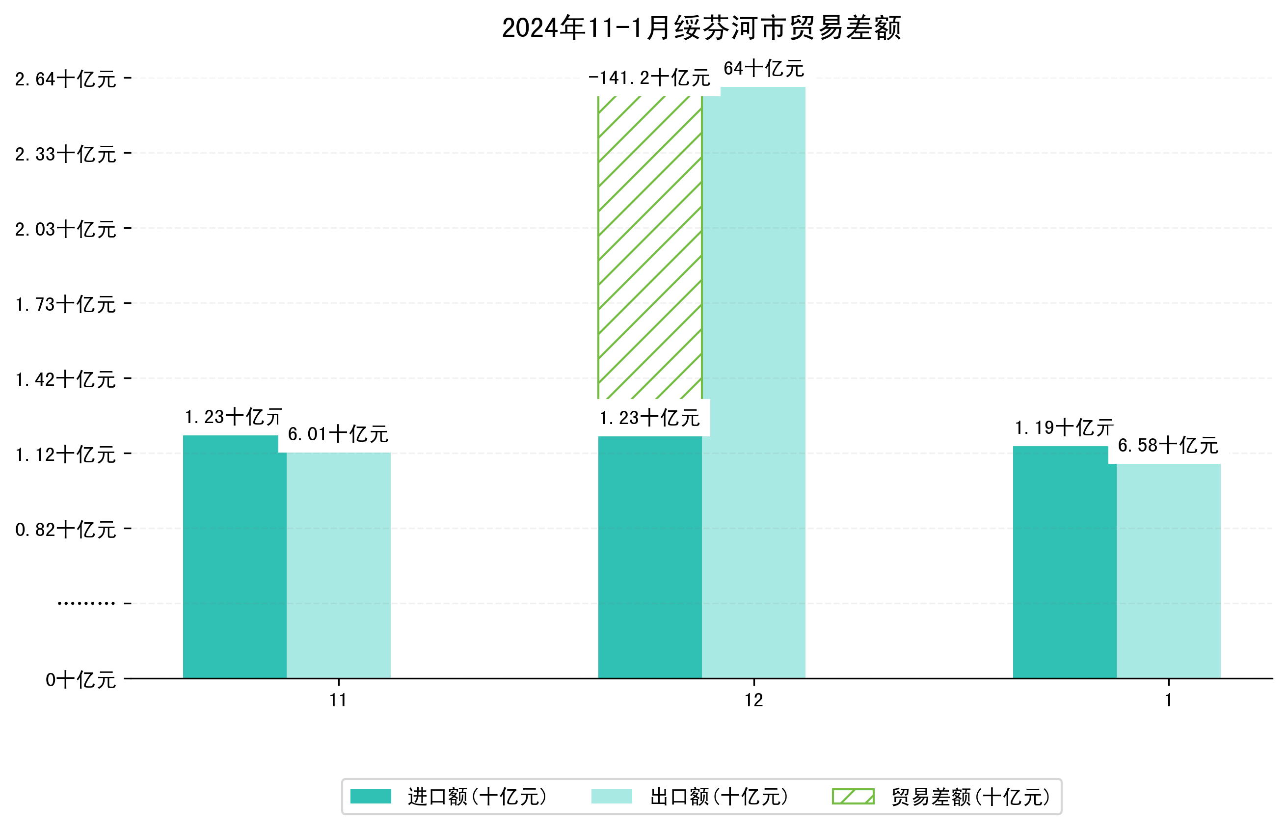 (图一:2024年11-1月绥芬河市进出口总额)