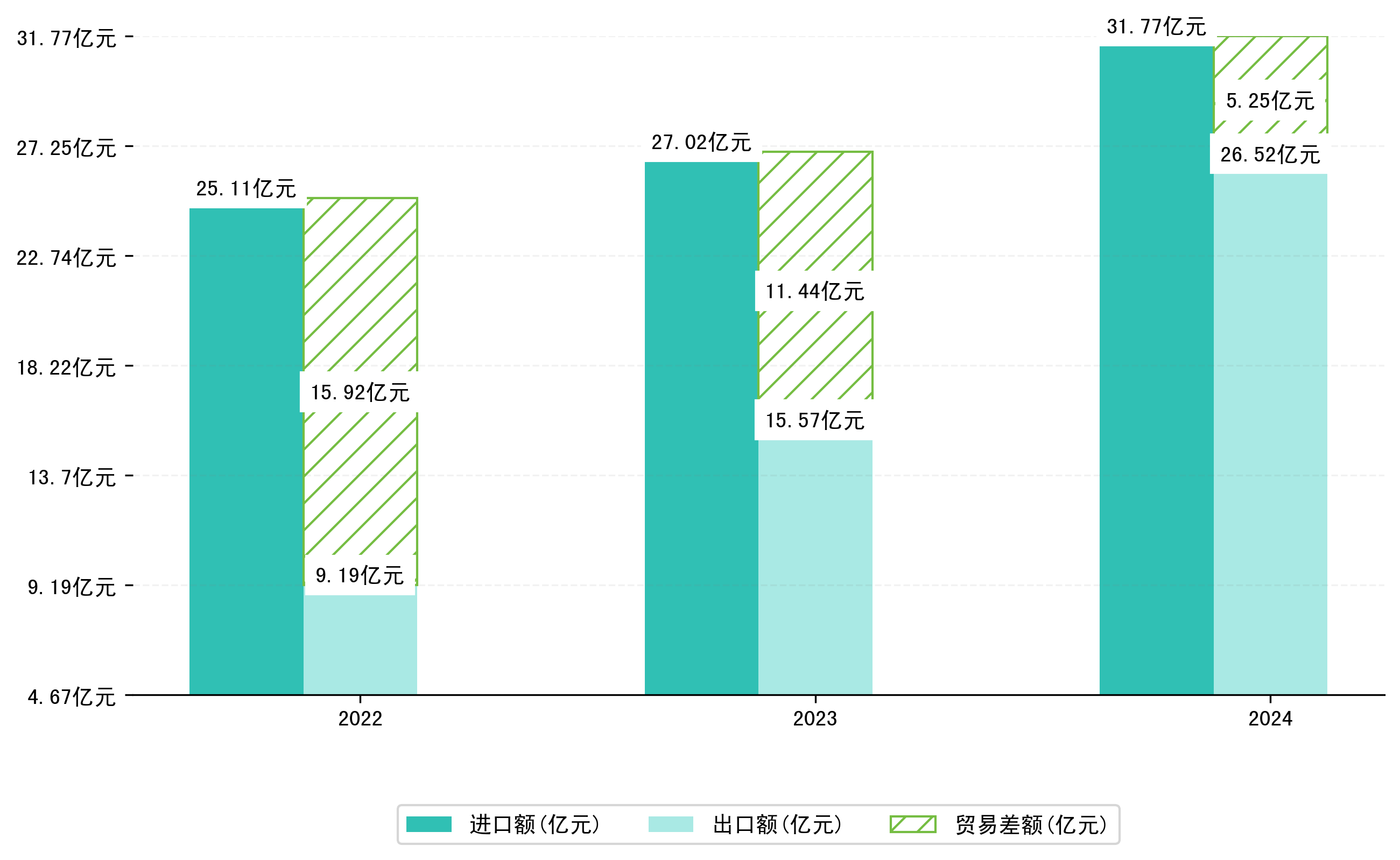 以美元计,2024年3月绥芬河市贸易差额为2733,3732万美元(贸易逆差),相比上月增加了948,2946万美元;相比上年同期增加了3317,4897万美元,同比增加-54.83%。