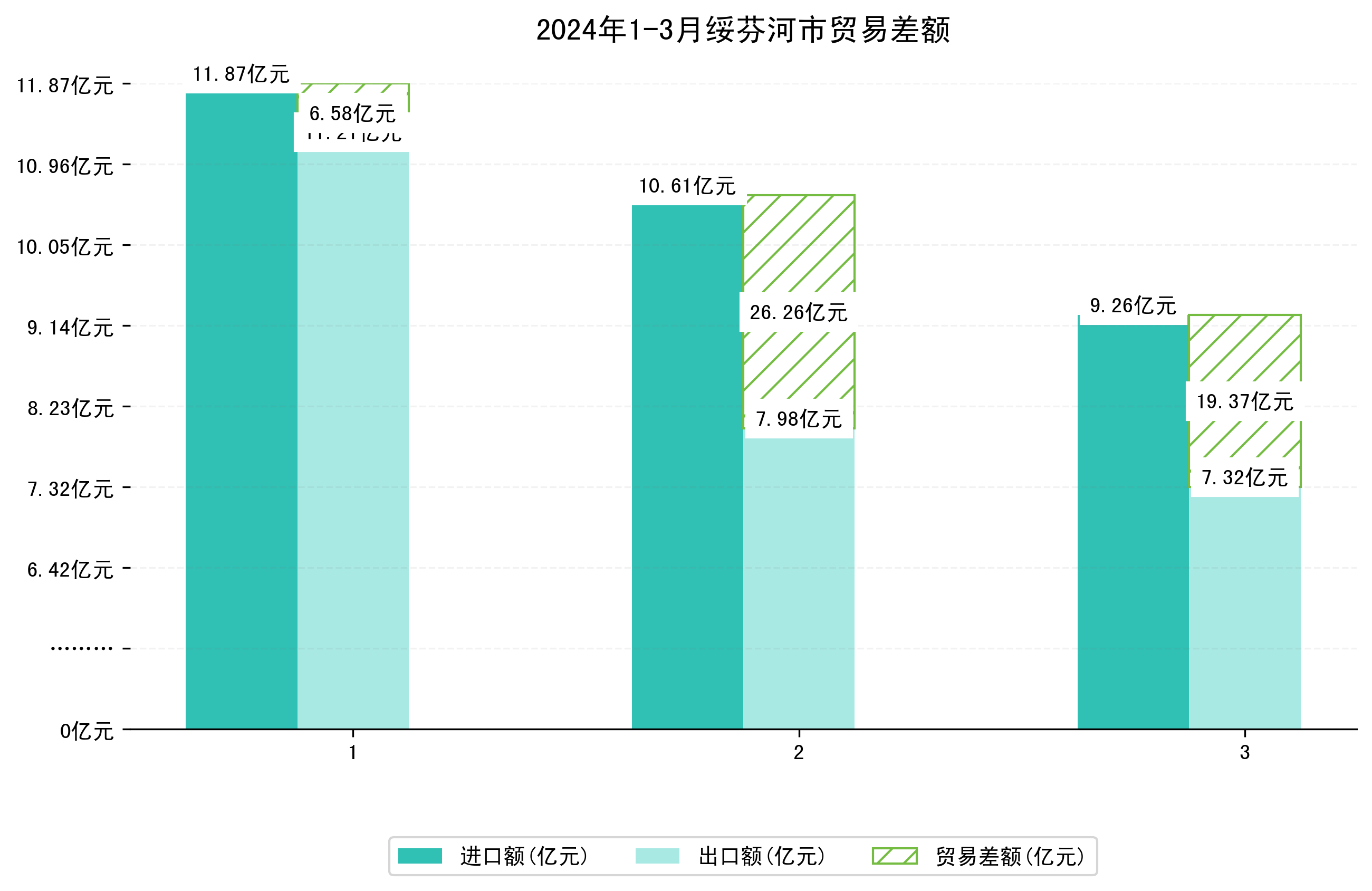 2024年3月绥芬河市进出口总额及进出口差额统计分析