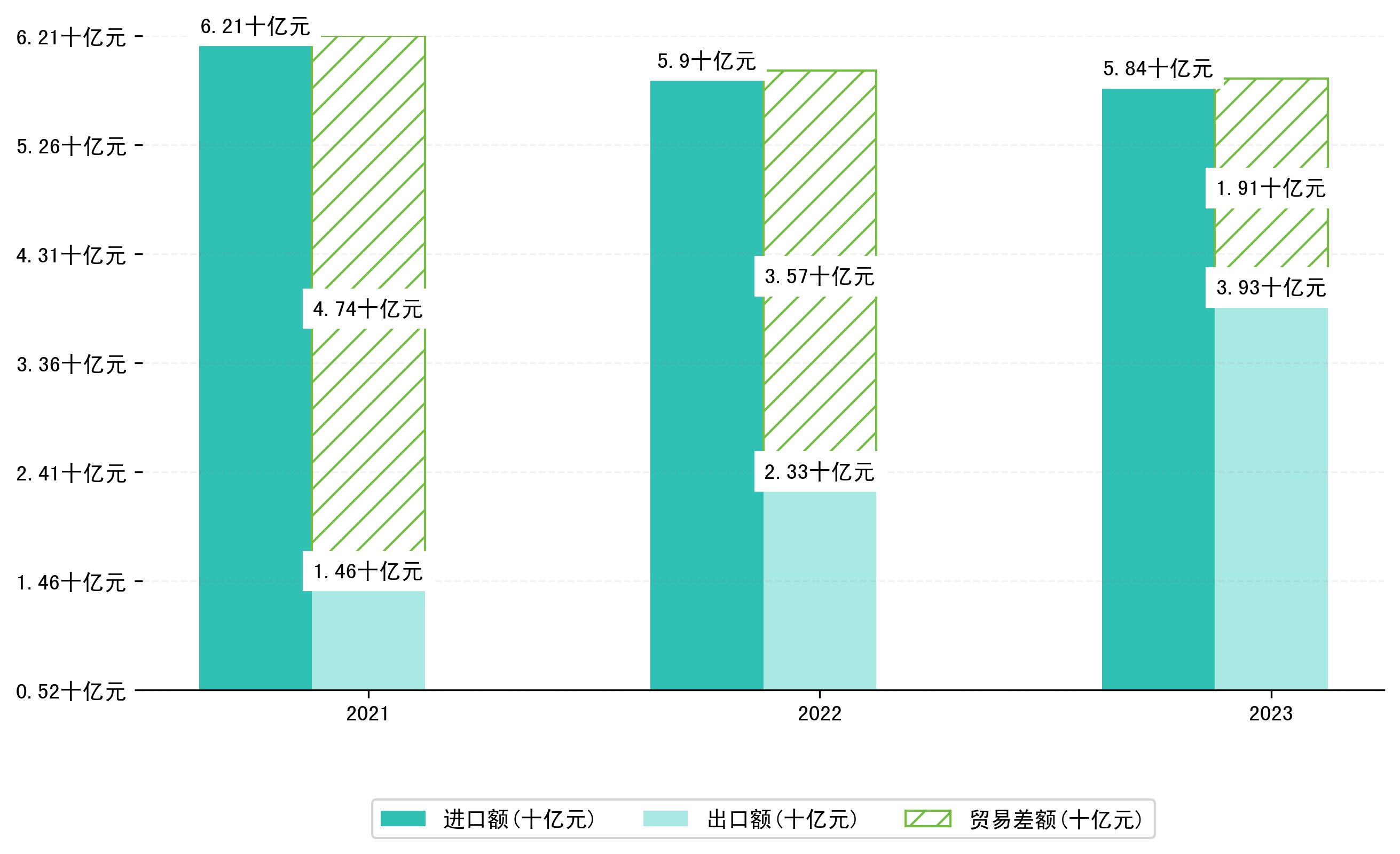 以人民币计,2023年6月绥芬河市贸易差额为2,3772,5538万元(贸易逆差),相比上月减少了1,2546,6324万元,即1826,0003万美元;相比上年同期增加了4,8318,8340万元,同比增加-67.02%。