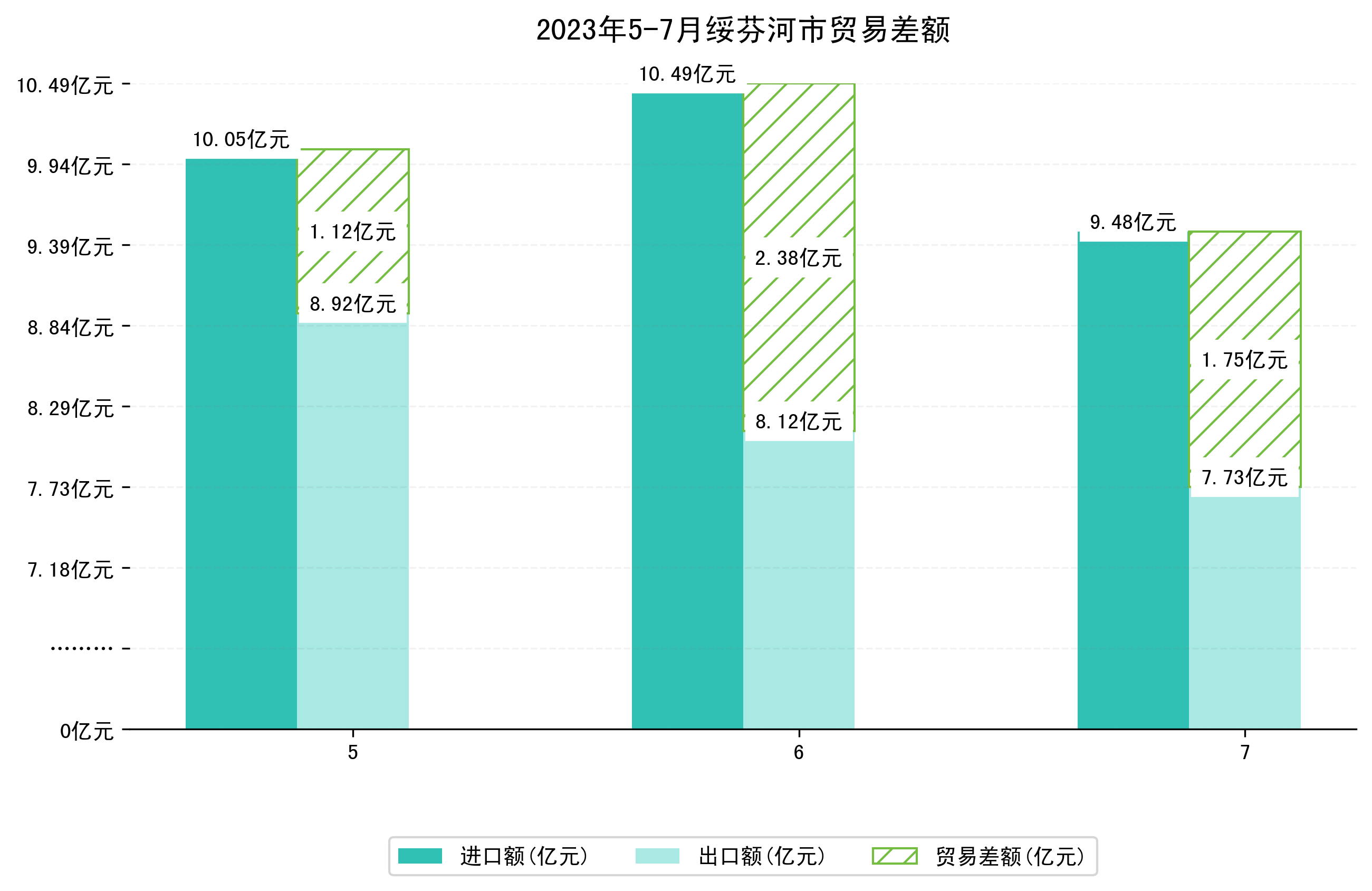 以人民币计,2023年1-7月绥芬河市贸易差额为20,7454,7611万元(贸易逆差),相比上年同期增加了20,3840,1050万元,同比增加-49.56%。