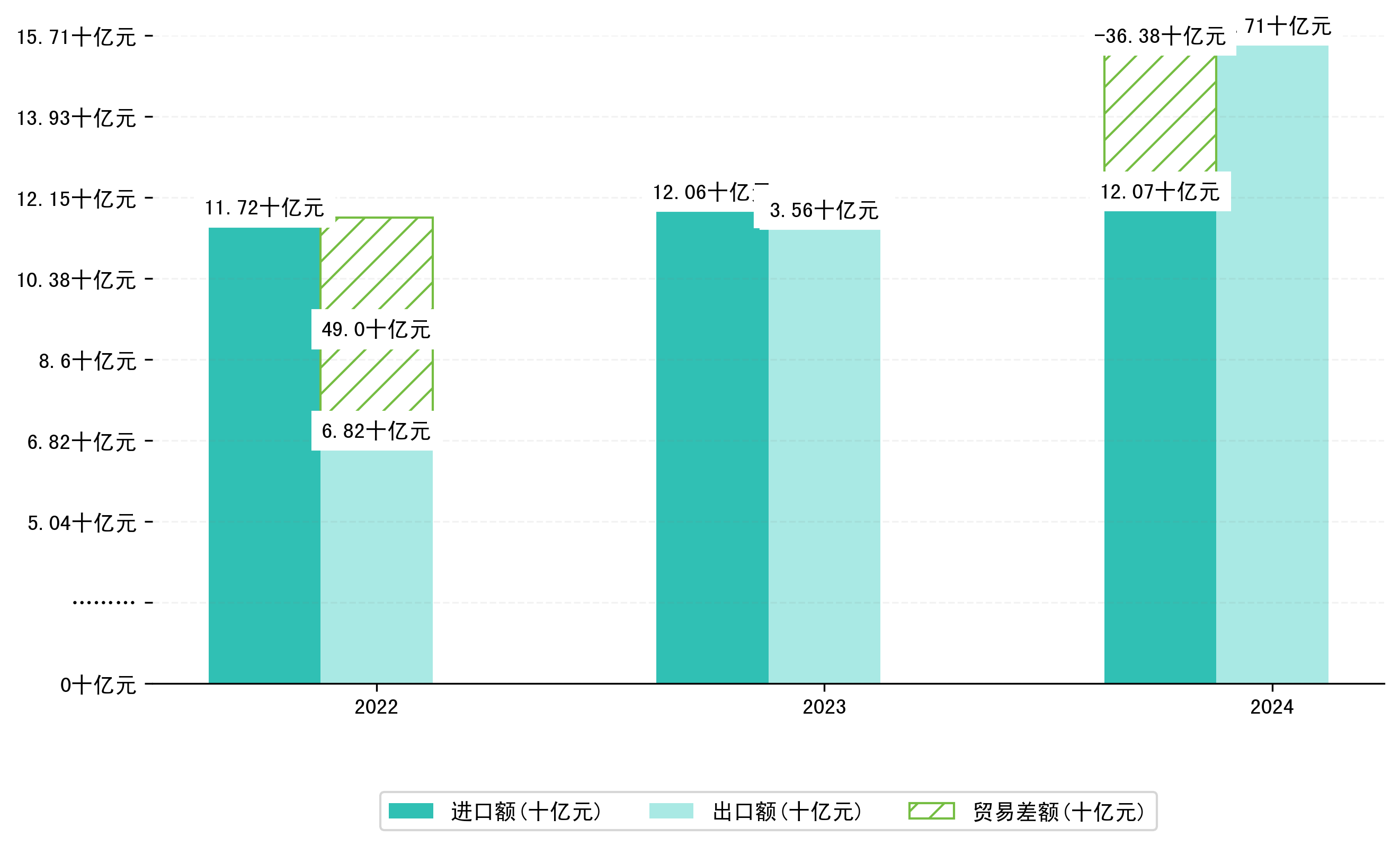 以美元计,2024年12月绥芬河市贸易差额为1,8945,1229万美元(贸易顺差),相比上月增加了5013,0683万美元;相比上年同期减少了821,7049万美元,同比减少-4.16%。