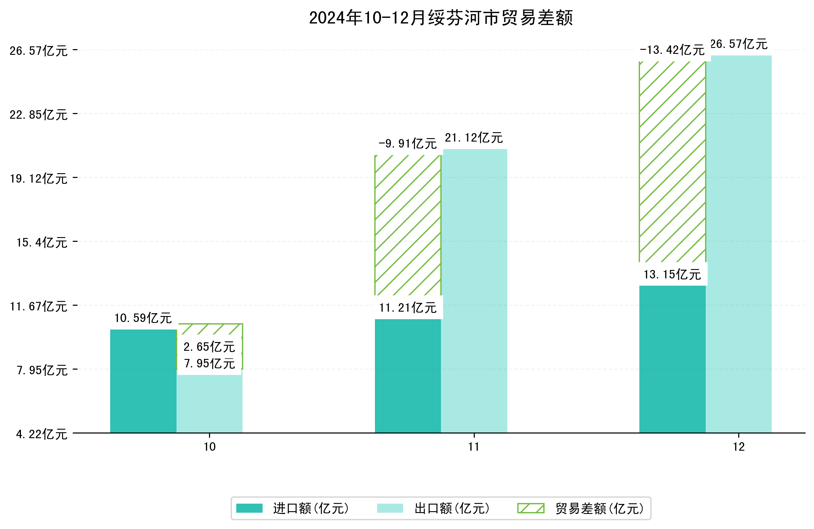 2024年12月绥芬河市进出口总额及进出口差额统计分析