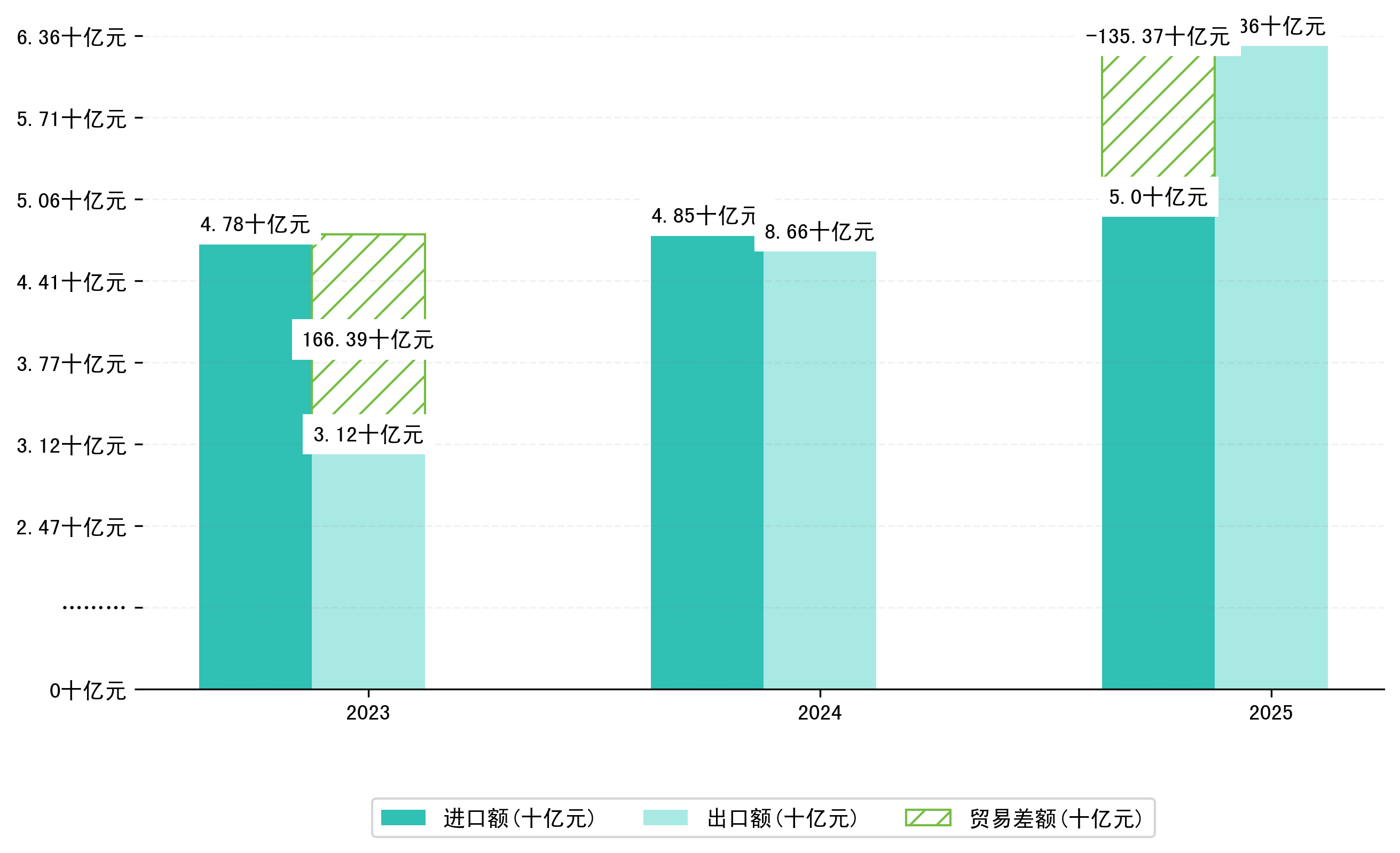 以人民币计,2025年5月绥芬河市贸易差额为3,1274,9905万元(贸易顺差),相比上月增加了1,0758,4807万元,即1419,3043万美元;相比上年同期减少了1,3914,2634万元,同比减少-30.79%。