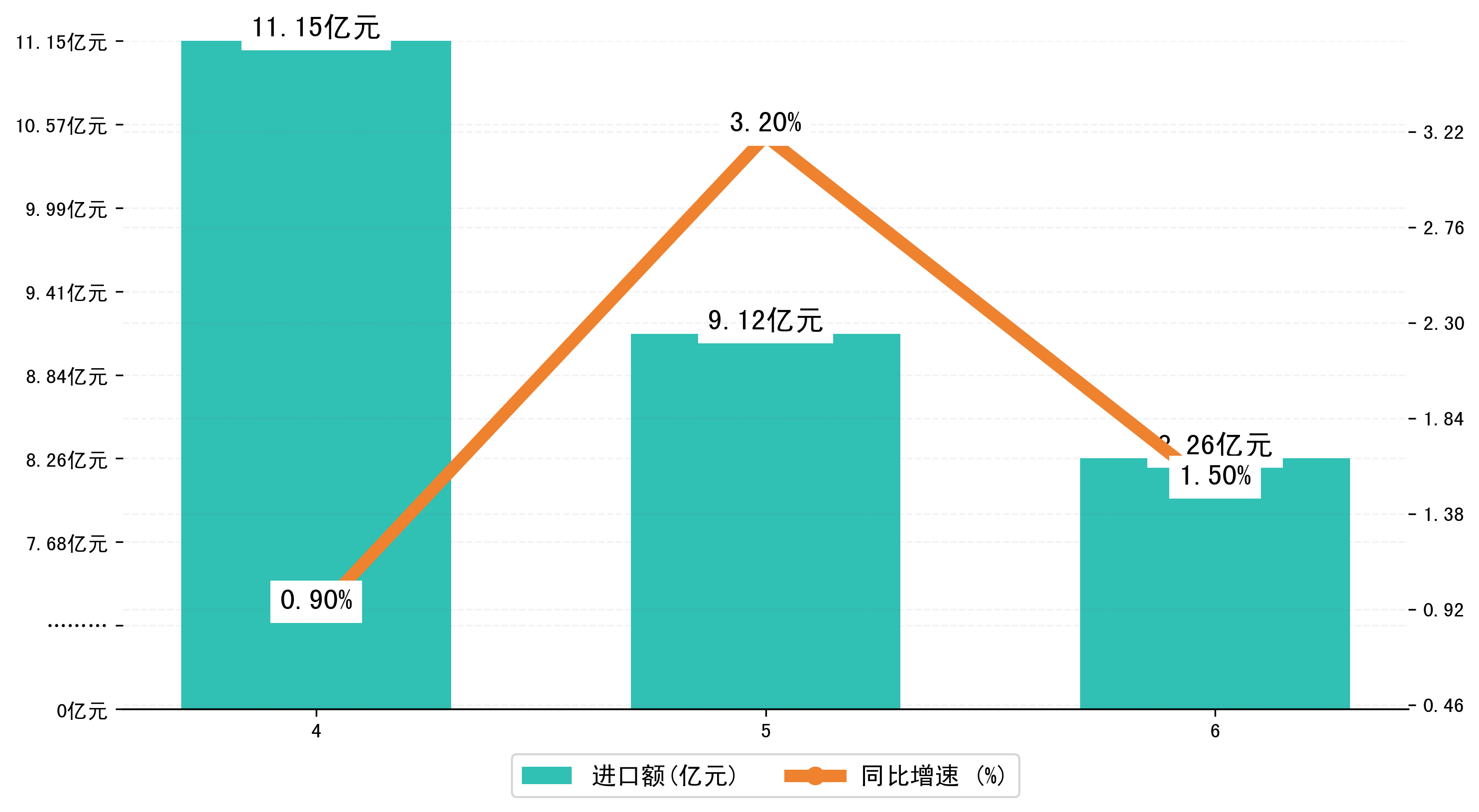以美元计,2025年1-6月绥芬河市进口额为8,1158.4319万美元,相比上年同期增加了119.0985万美元,同比增加0.30%。