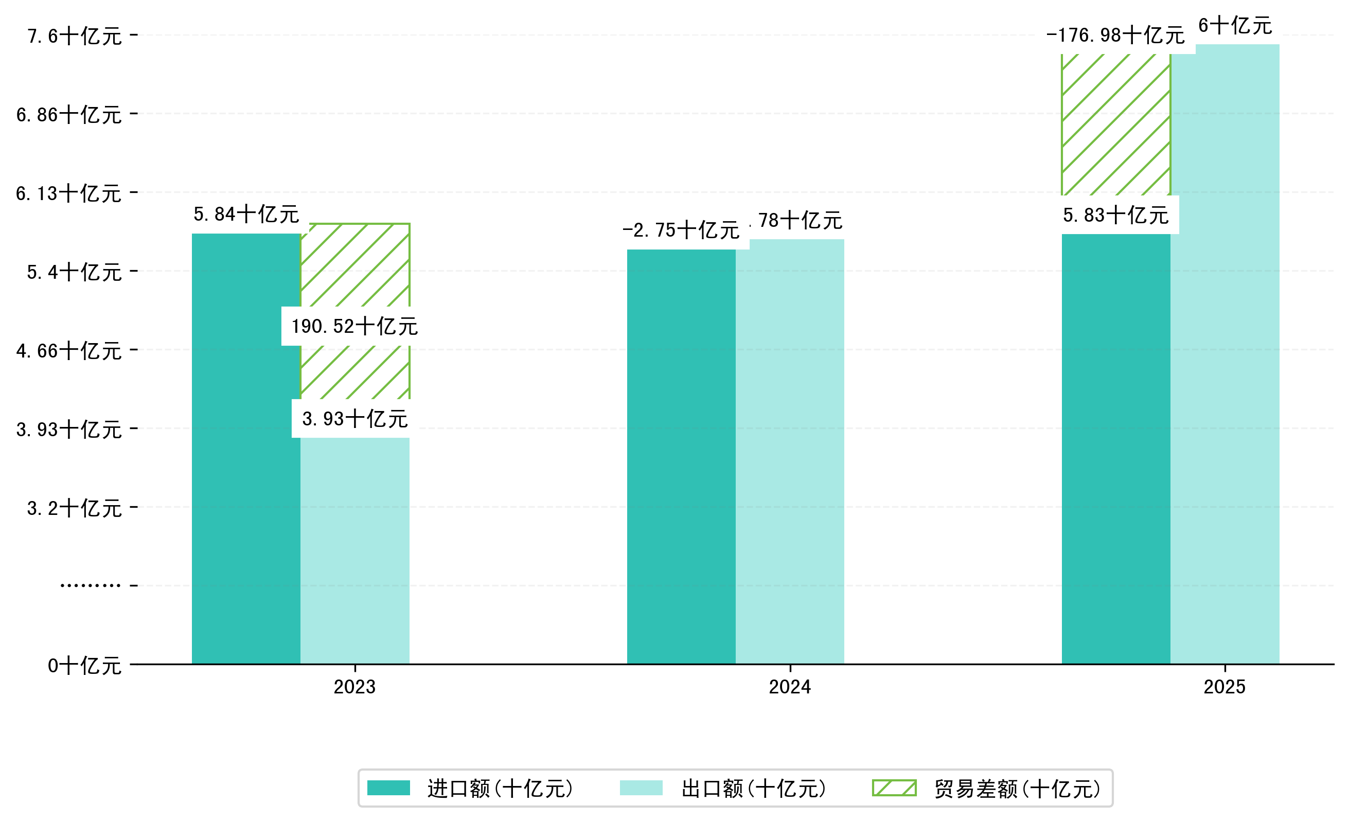 以美元计,2025年1-6月绥芬河市贸易差额为2,4625,6996万美元(贸易顺差),相比上年同期增加了2,4280,3114万美元,同比增加7029.86%。