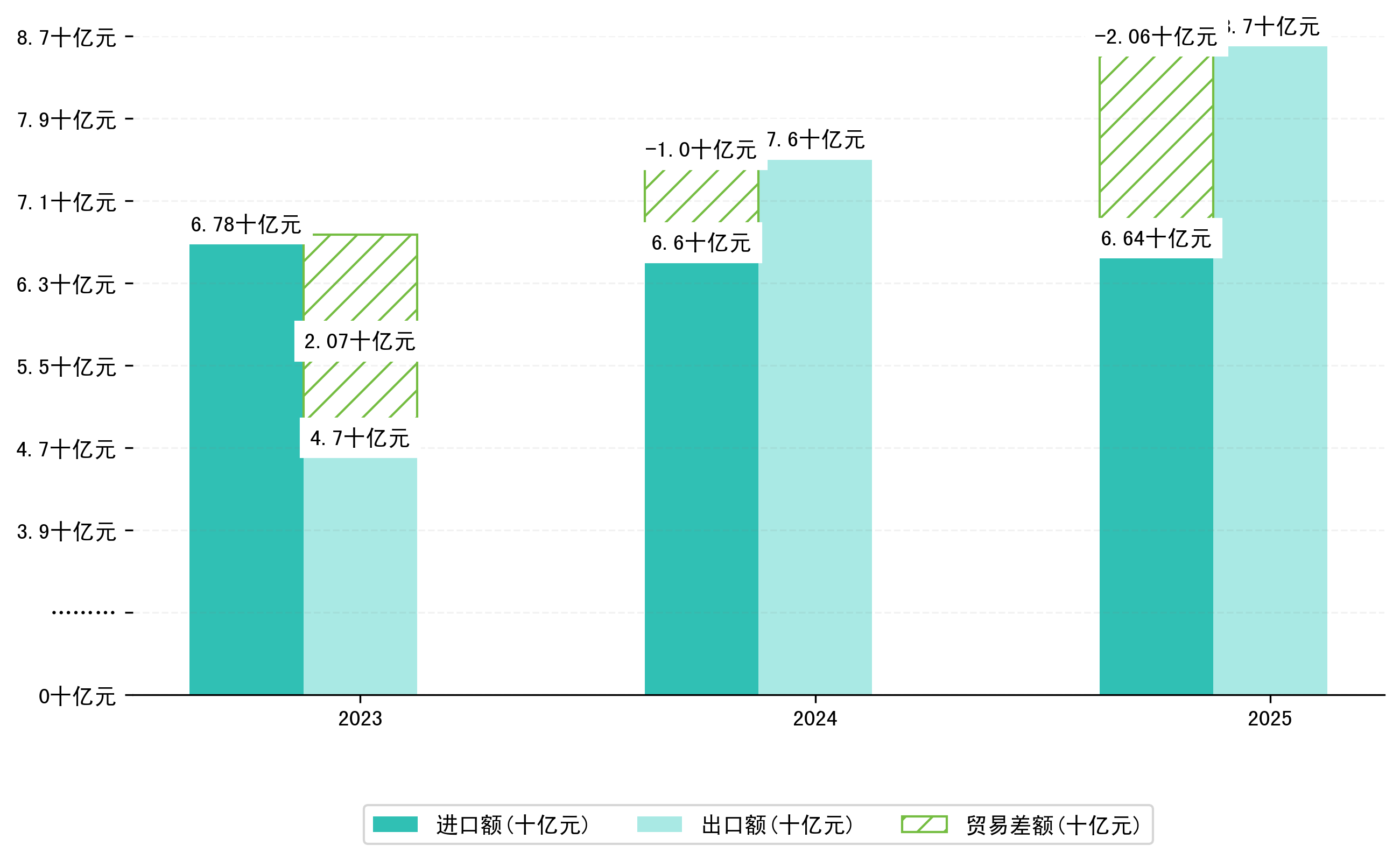 以美元计,2025年1-7月绥芬河市贸易差额为2,8693,3719万美元(贸易顺差),相比上年同期增加了1,4639,6179万美元,同比增加104.17%。