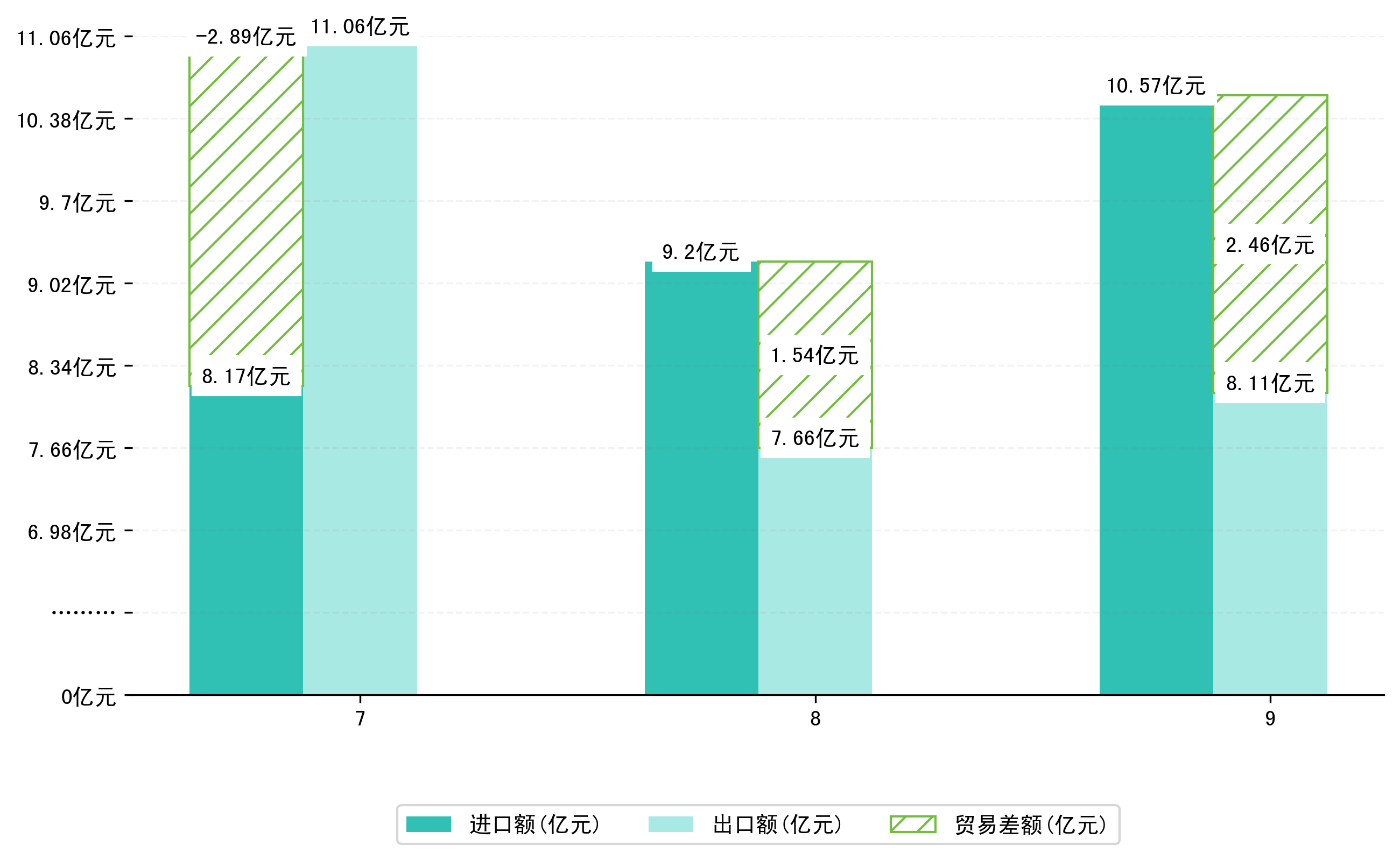 2025年9月绥芬河市进出口总额及进出口差额统计分析