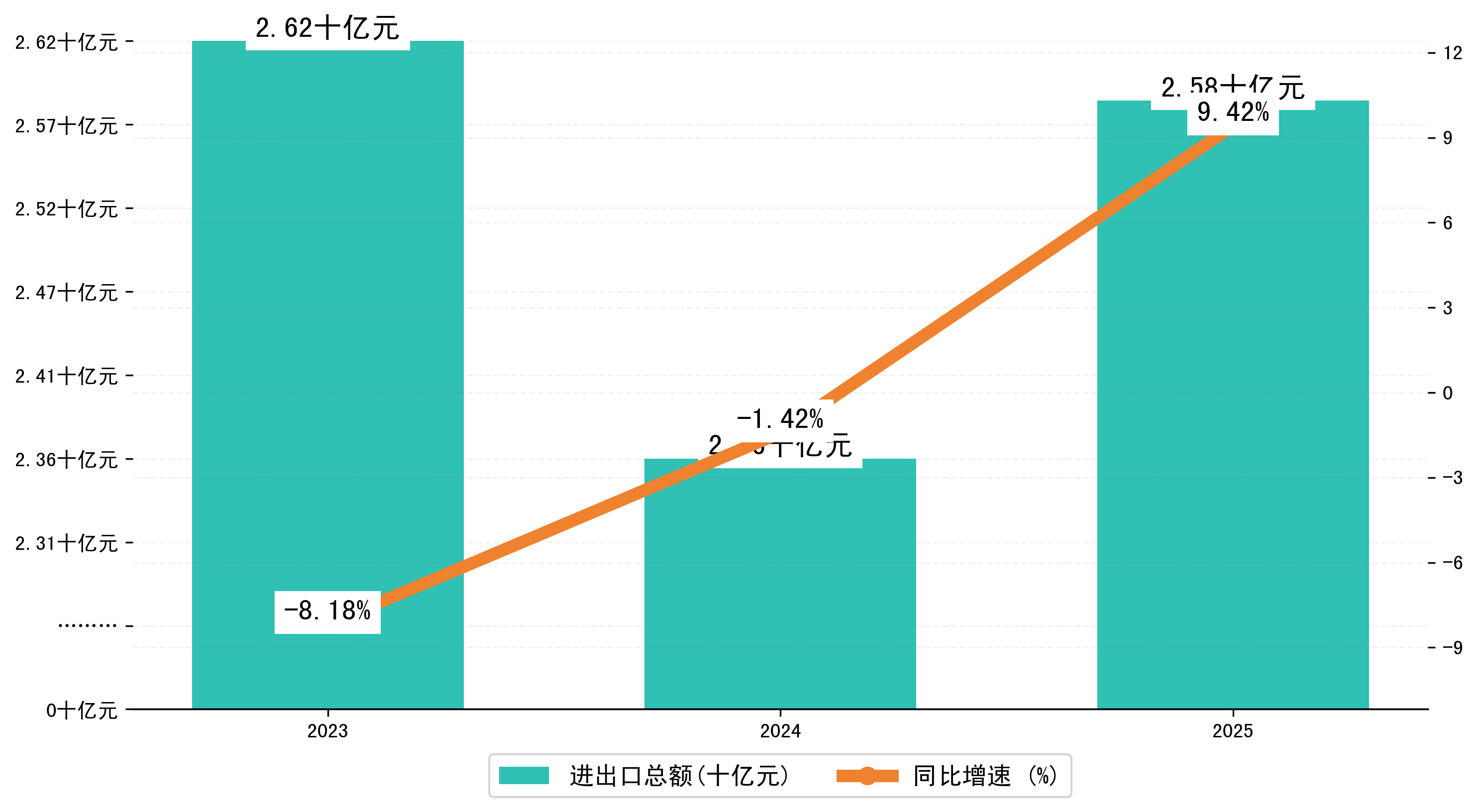 以人民币计,2025年1-5月绥化市进出口总额为25,8407.6248万元,相比上年同期增加了2,2253.0266万元,同比增加了9.40%。