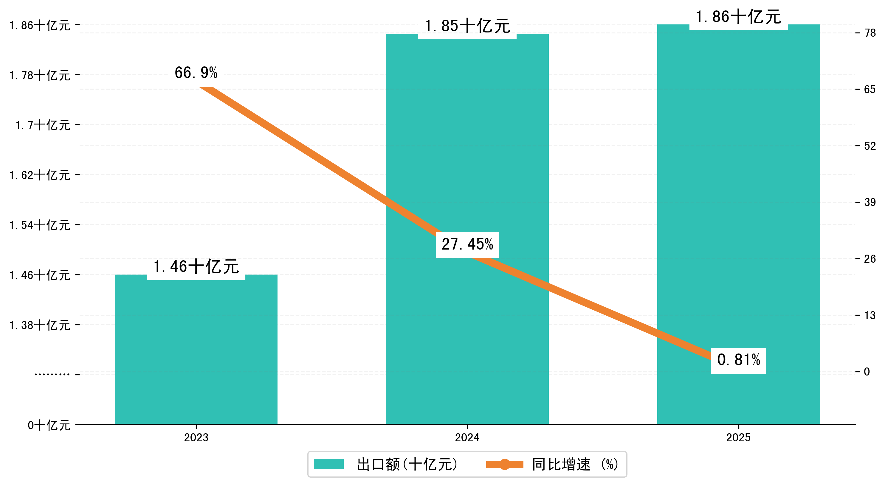 以人民币计,2025年1-5月绥化市出口额为18,6038.9822万元,相比上年同期增加了1494.576万元,同比增加了0.80%。