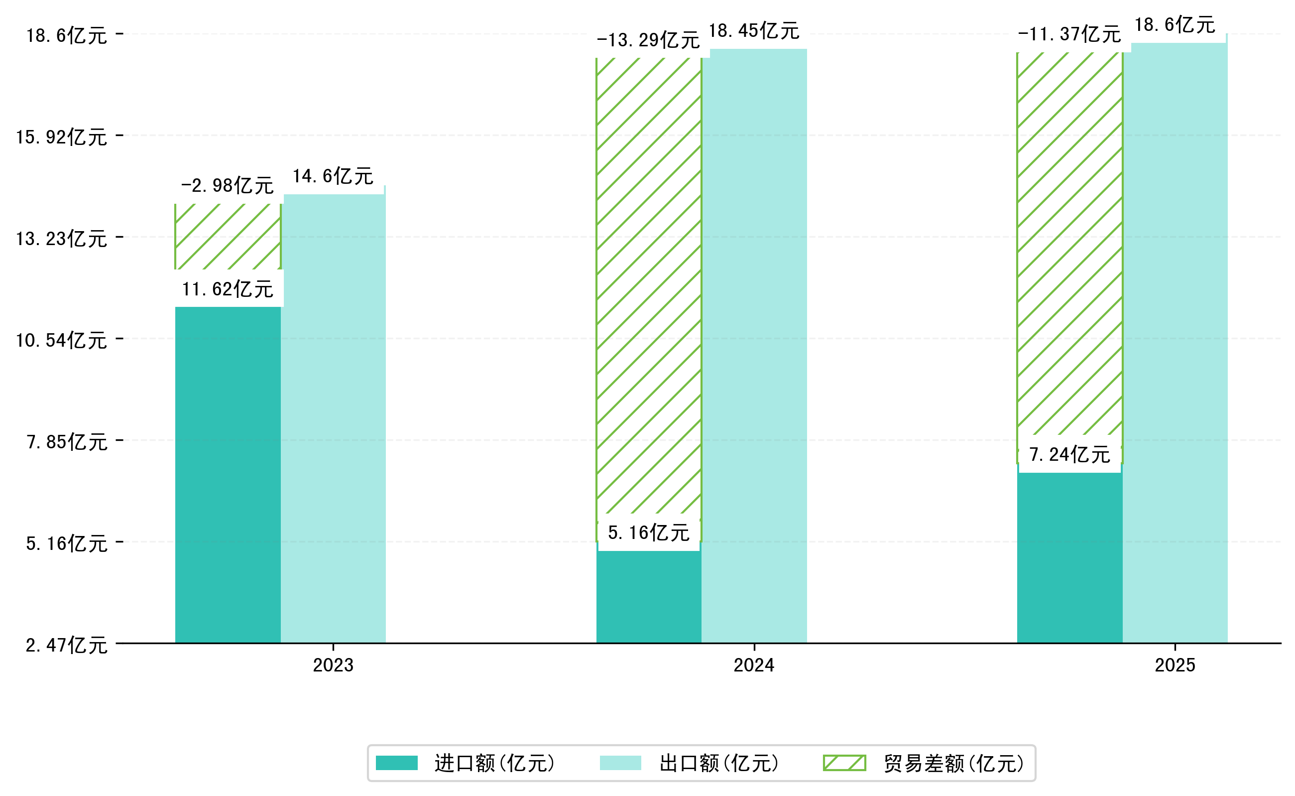 以人民币计,2025年1-5月绥化市贸易差额为11,3670,3396万元(贸易顺差),相比上年同期减少了1,9263,8746万元,同比减少-14.49%。