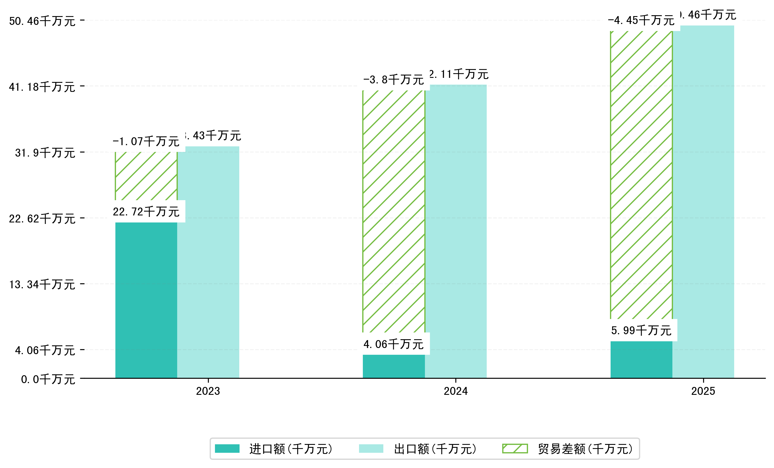 以美元计,2025年1-1月绥化市贸易差额为6181,7535万美元(贸易顺差),相比上年同期增加了823,0193万美元,同比增加15.36%。