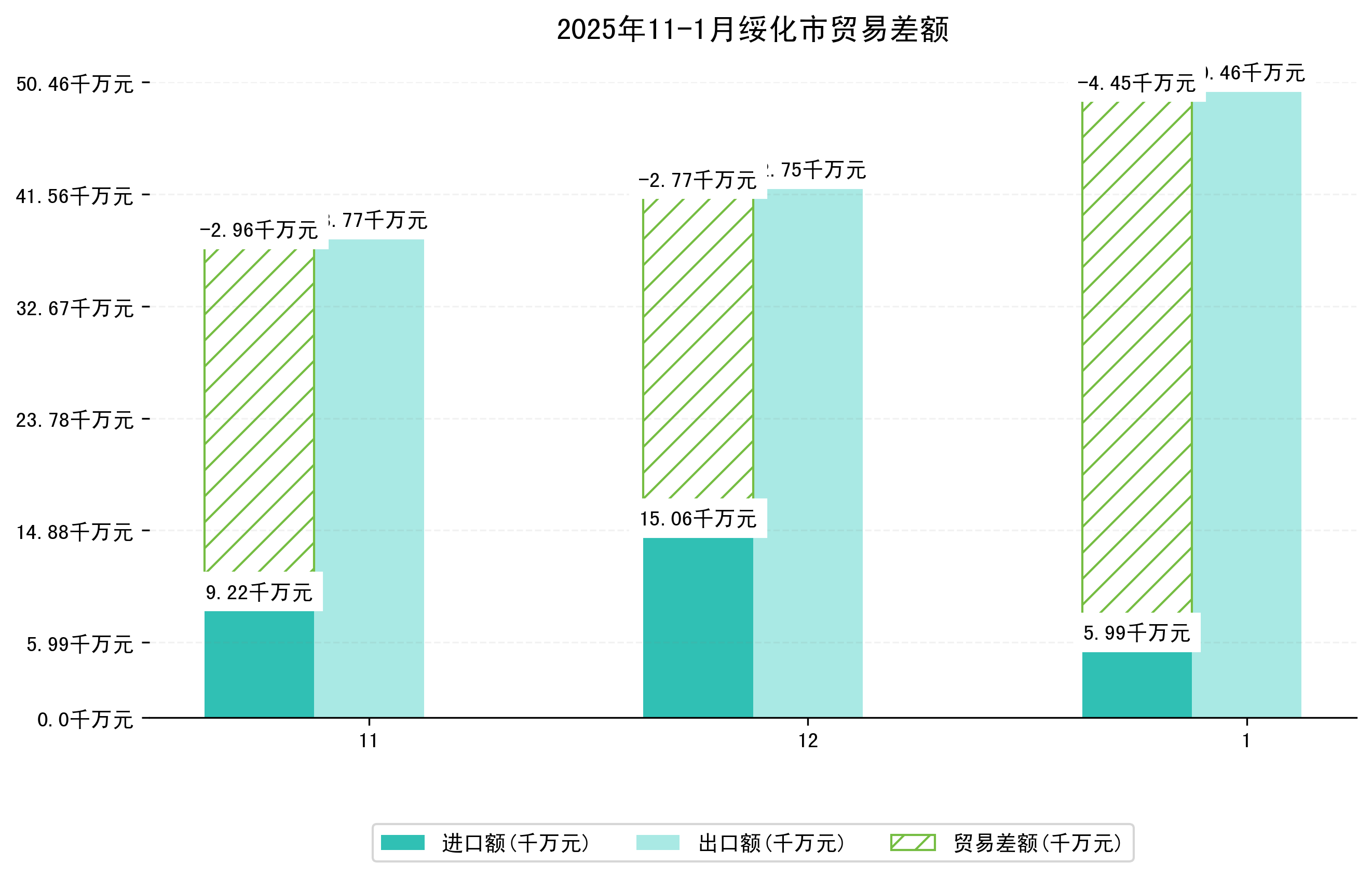 (图四:2025年11-1月绥化市贸易差额)