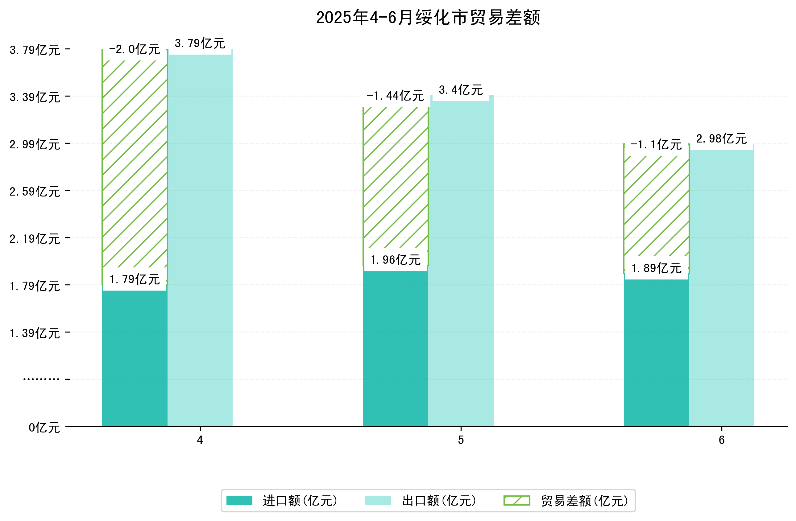 2025年6月绥化市进出口总额及进出口差额统计分析