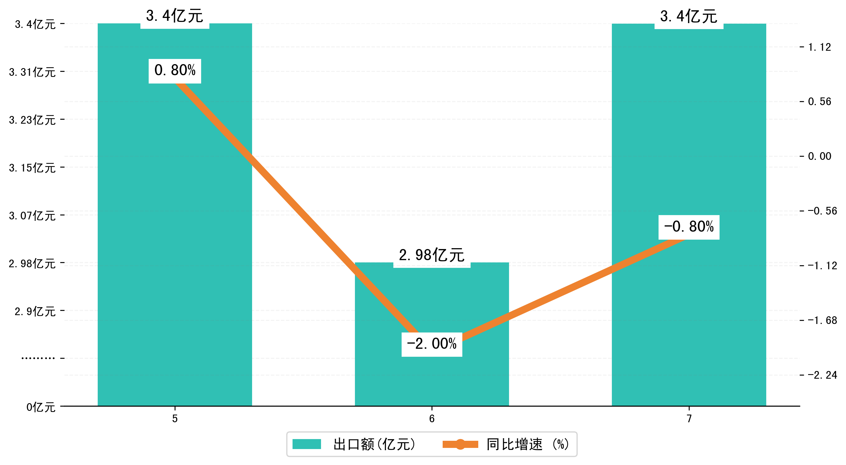 一、2025年7月绥化市单月出口总额及进出口差额统计分析