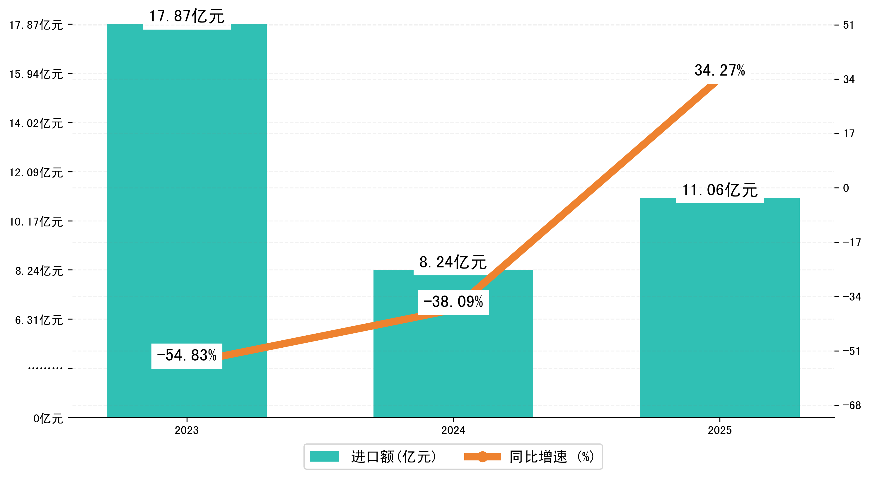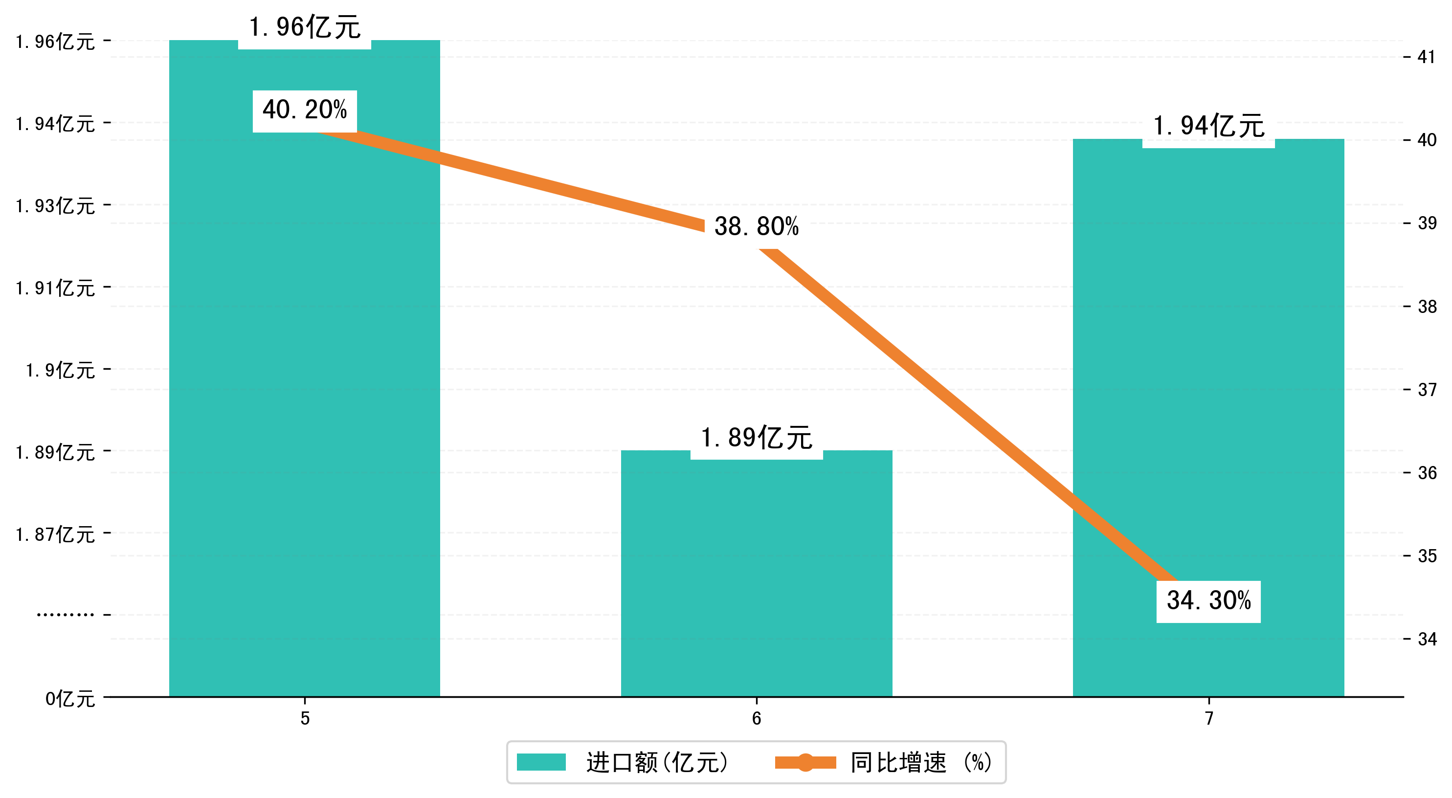 以人民币计,2025年1-7月绥化市进口额为11,0635.5493万元,相比上年同期增加了2,8239.7958万元,同比增加了34.30%。